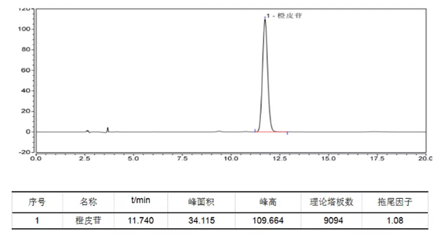 按照2020版药典采用GL InertSustain C18色谱柱测定橙皮苷