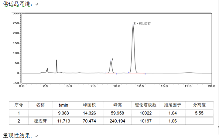2020版药典测定“橙皮苷”色谱条件与系统适用性试验如下: