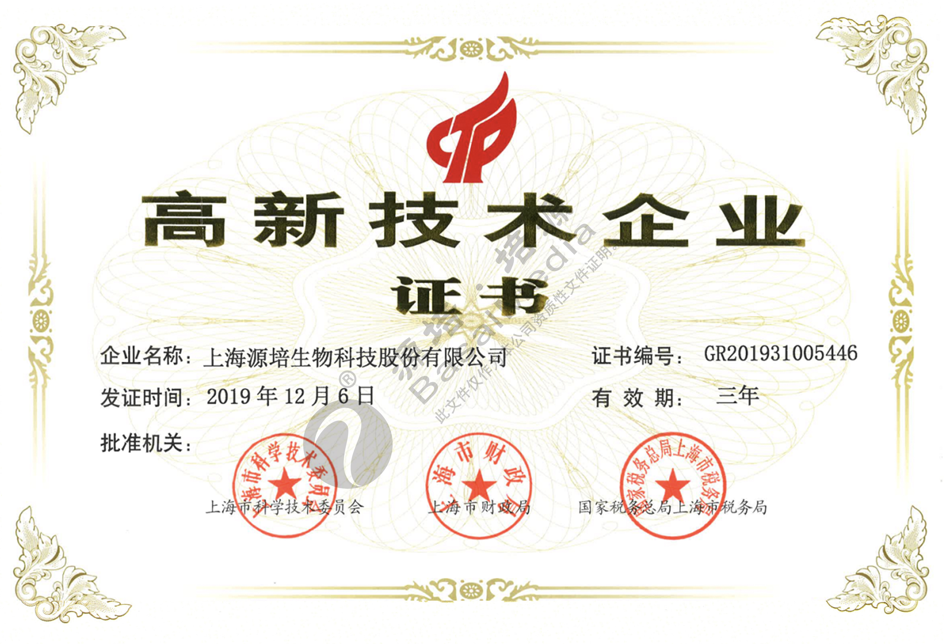 高新技术企业证书2019 上传
