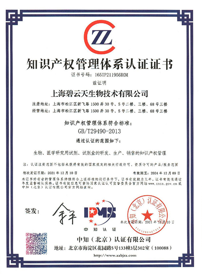 碧云天由在哈佛大学工作和学习的留学人员创办于 2001 年。20 余年来专注于自主研发和生产。2007 年成立上海碧云天生物技术有限公司,为国家级专精特新「小巨人」企业,并进一步入选第二批第一年建议支持的国家级专精特新「小巨人」企业,也是上海市科技小巨人企业、G60 科创走廊领军企业、G60 科创走廊科创新驱动 100 强、 上海专精特新「小巨人」企业品牌价值榜「TOP 100」、上海市专精特新中小企业和上海市高新技术企业,并且是中国检验检测学会常务理事单位和中国检验检测学会科研试剂分会理事单位。公司主要研发生产生物、医学研究用试剂、试剂盒、及相关消耗品和仪器设备,同时提供生命科学研究的技术服务和一站式科研装备采购平台。公司拥有 5 人次国家级人才和近 20 人次省部级人才。公司核心团队由来自美国哈佛大学、NIH、香港大学、中国科学院等国内外著名大学和科研机构的高水平科研人员及诺华等顶尖医药企业的管理人员组成。2016 年 1 人获国务院政府特殊津贴,2 人入选「松江区优秀人才」;2019 年 1 人入选国家百千万人才工程,1 人入选上海市领军人才,6 人获 G60 科创走廊优秀