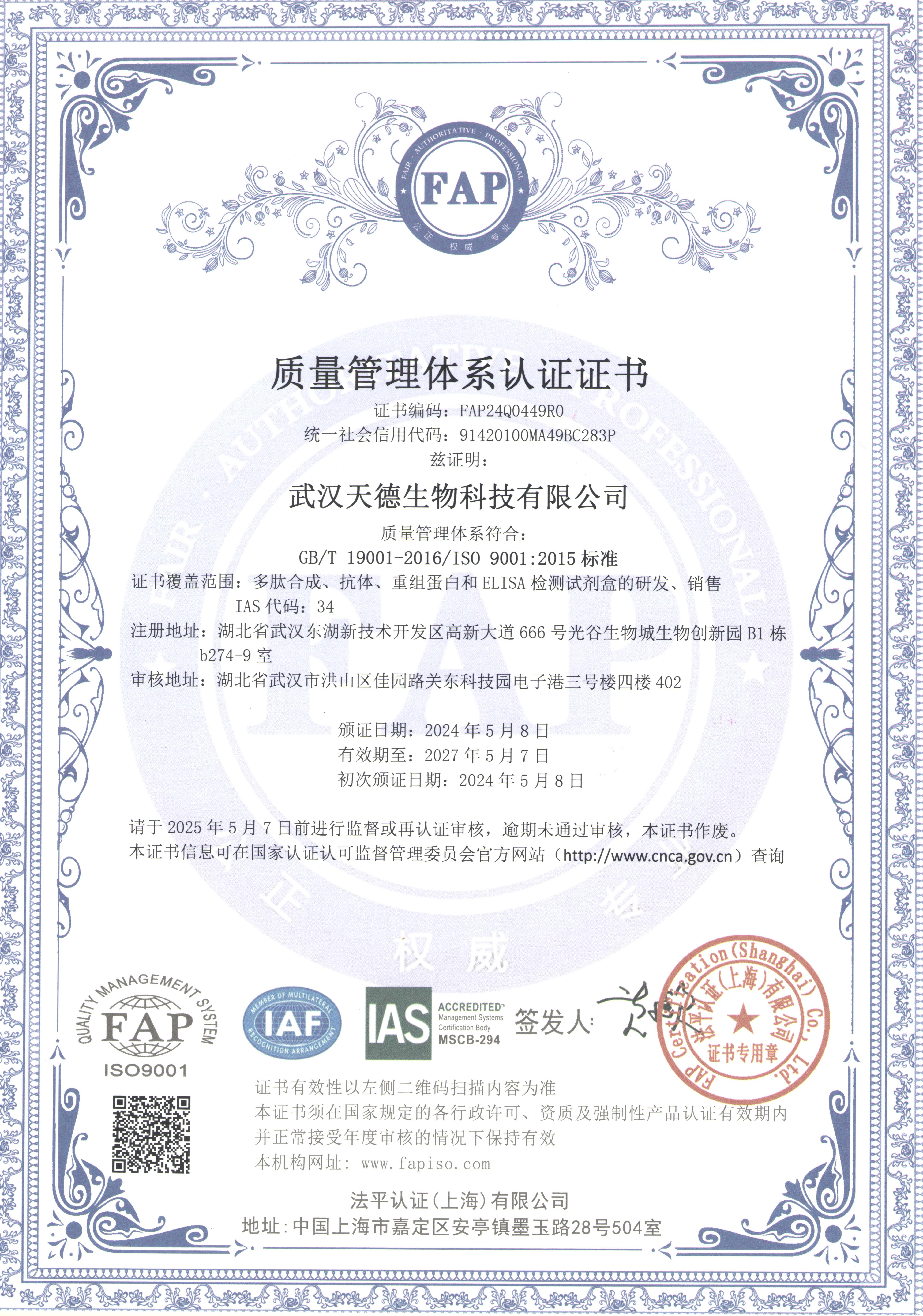 武汉天德生物科技有限公司成立于2019年,位于武汉光谷生物城,是一家由资深神经生物学专家和海外留学人员创建的高科技生物技术企业。公司旨在开发多种中枢神经系统疾病早期诊断检测试剂盒物,干预治疗药物,神经干细胞治疗。特别是以阿尔茨海默症为代表的神经退行性疾病的再生医学治疗,因此公司聚焦于开发中枢神经干细胞体外再生体系,以及使用该体系进行疾病治疗的临床新方案。 目前,公司已经完善了无血清神经元定向分化体系,并配备有完善的分子生物学,细胞生物学,细胞新药研发,高通量电生理平台。为中枢神经系统疾病患者提供全方位细胞解决方案。除此之外,公司还建有新型生物反应器抗原/抗体/生产平台;基因工程蛋白抗体平台;免疫诊断检测平台。已建立了从诊断试剂抗原抗体原料开发,到诊断试剂制备的研发生产路线。为疾病的早期发现,干预,治疗提供技术支持和方案。