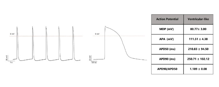 *hiPSC-CMs经膜片钳技术检测,DAY30+心肌细胞电生理活动正常。