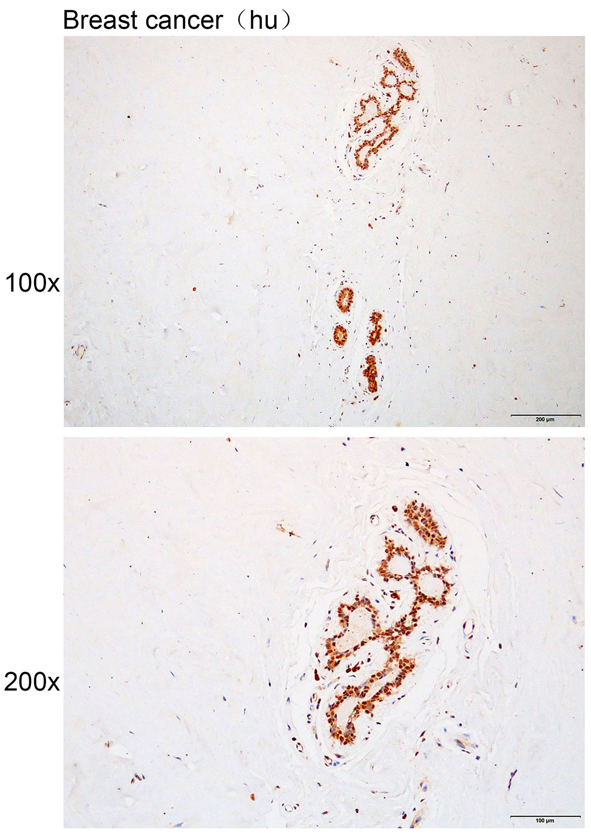 Immunohistochemistry of paraffin-embedded Human breast cancer with ORC5 antibody diluted at 1:200.