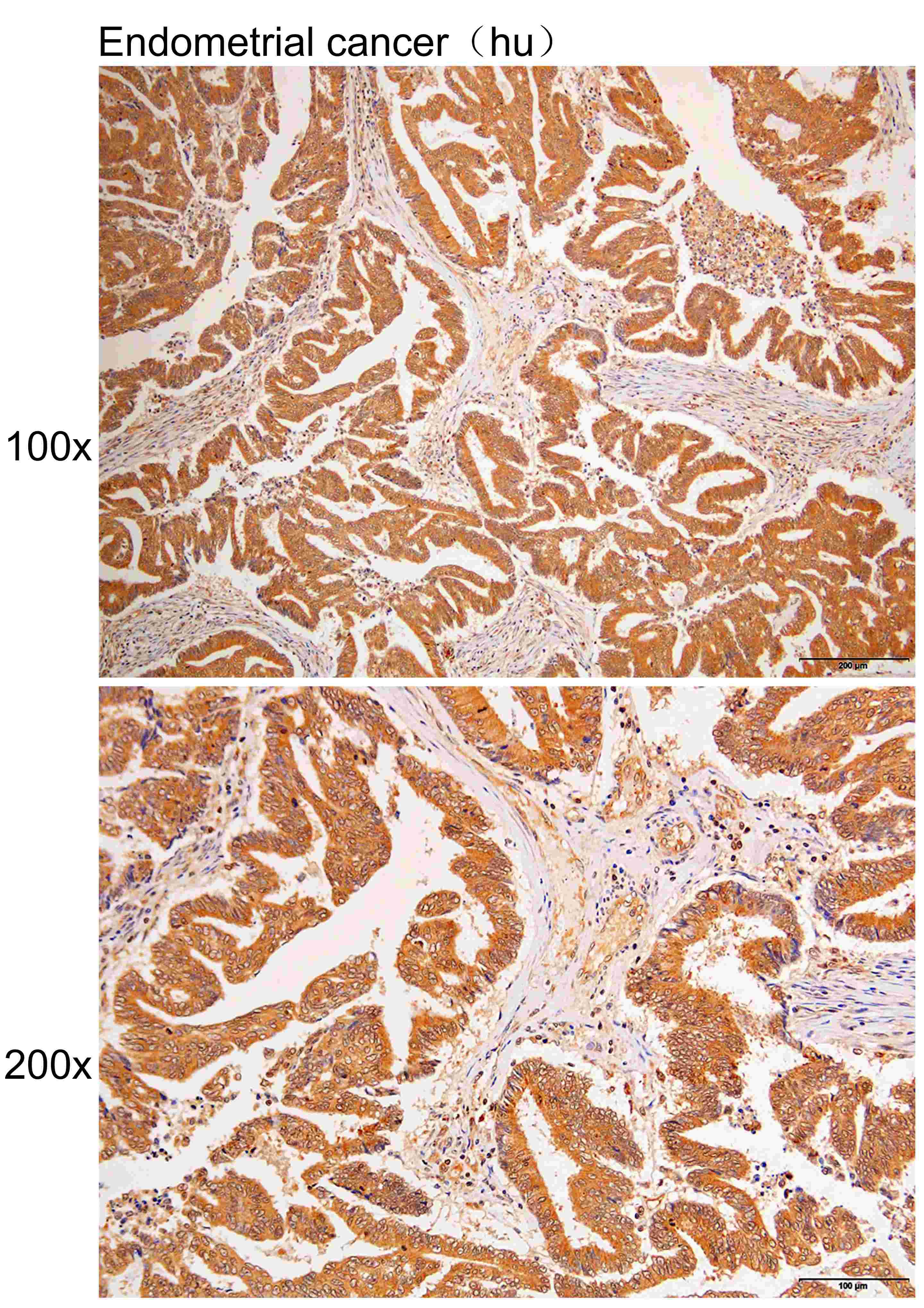 Immunohistochemistry of paraffin-embedded Human endometrial cancer with MRPL42 antibody diluted at 1:40