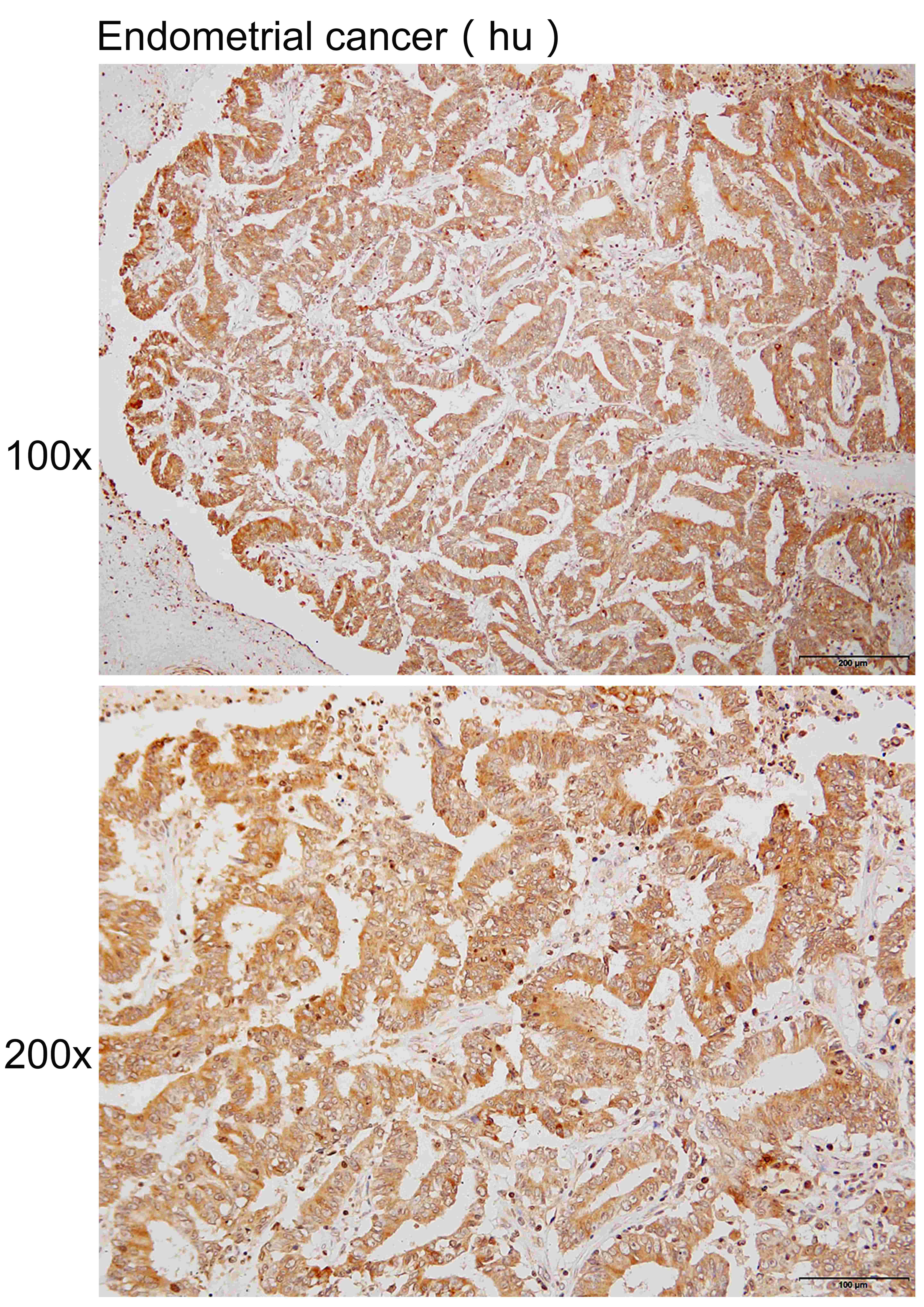 Immunohistochemistry of paraffin-embedded Human endometrial cancer with C1QC antibody diluted at 1:40