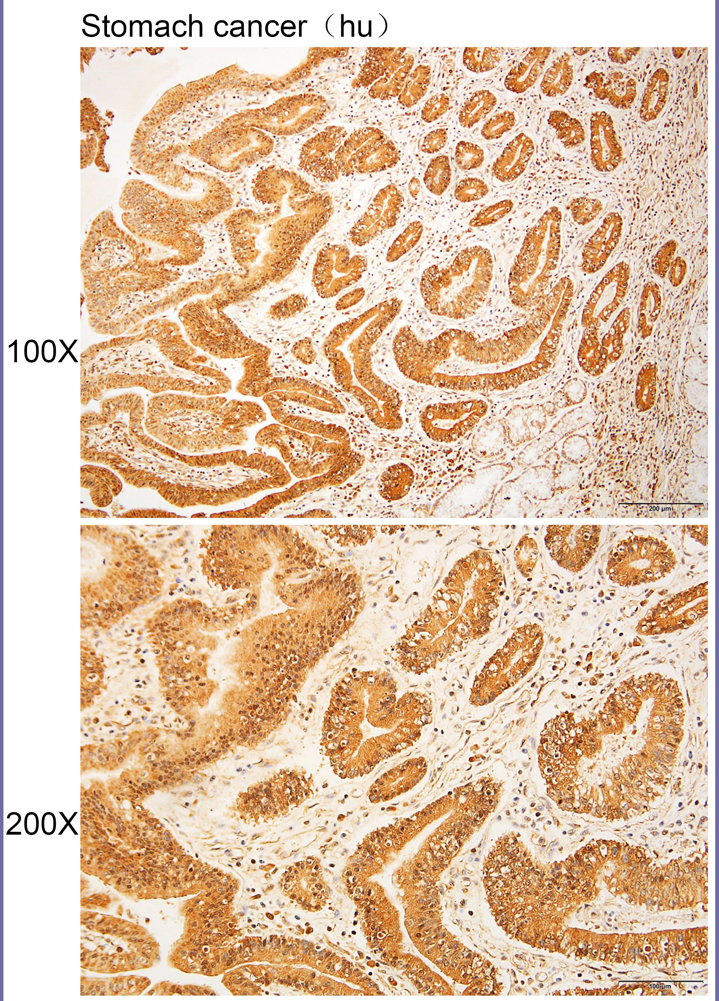Immunohistochemistry of paraffin-embedded Human stomach cancer using MEN1 antibody diluted at 1:40