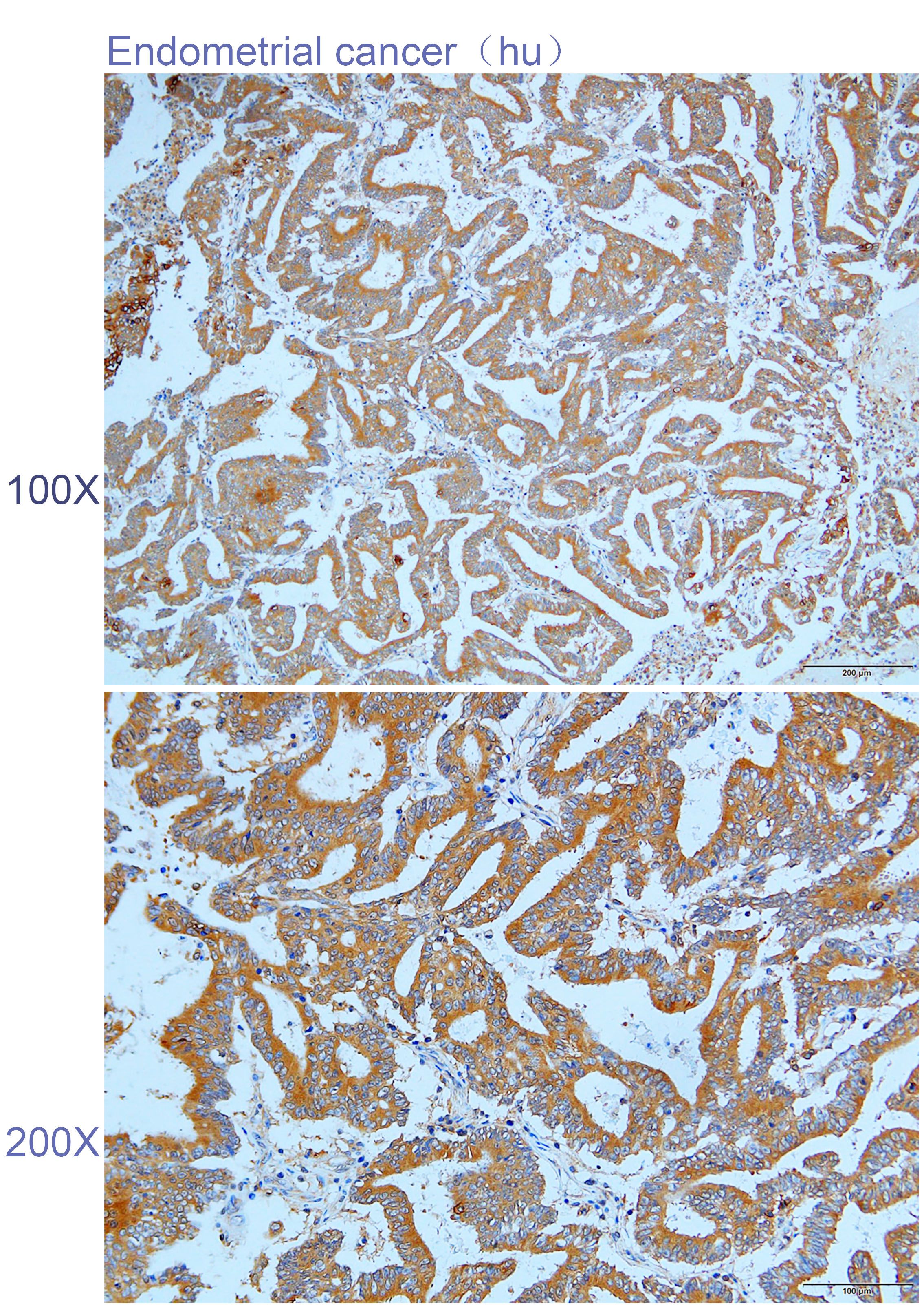 Immunohistochemistry of paraffin-embedded Human endometrial cancer with GPR160 antibody diluted at 1:80
