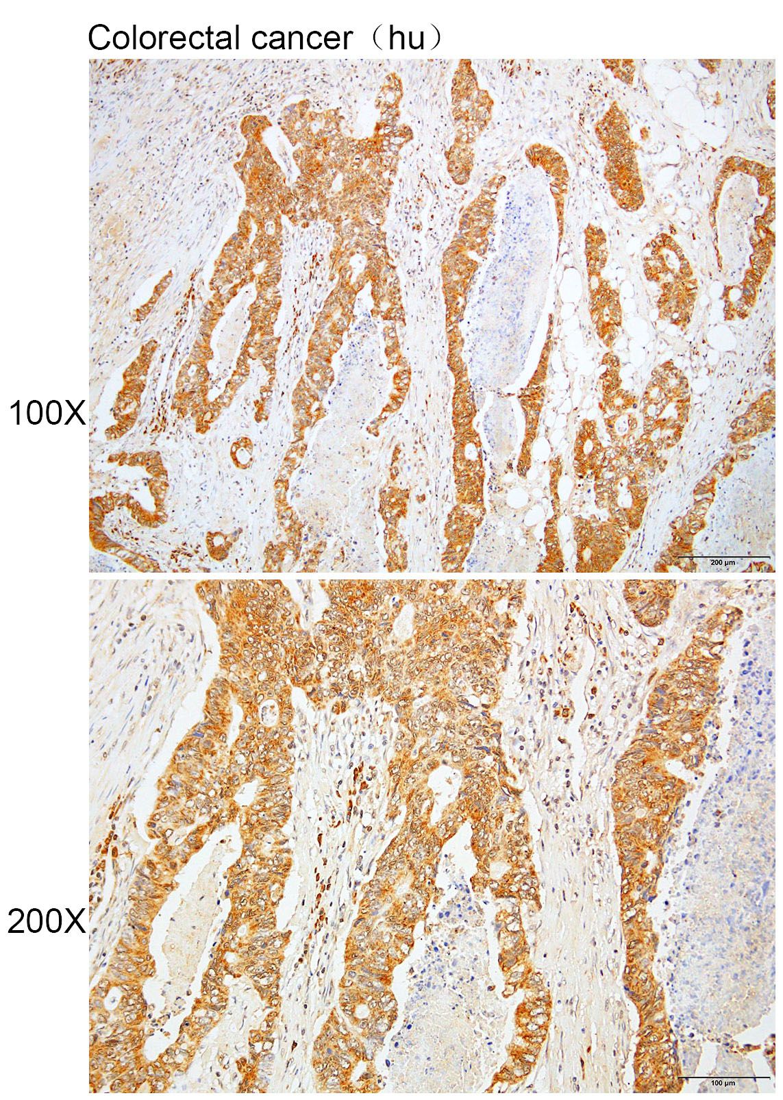 Immunohistochemistry of paraffin-embedded Human colorectal cancer with OPRK1 antibody diluted at 1:200