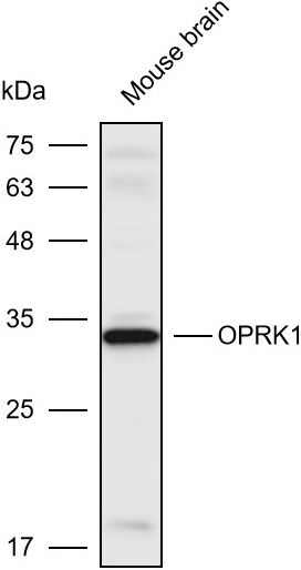 Western blot analysis with OPRK1 antibody diluted at 1:10000;Lane: Mouse brain