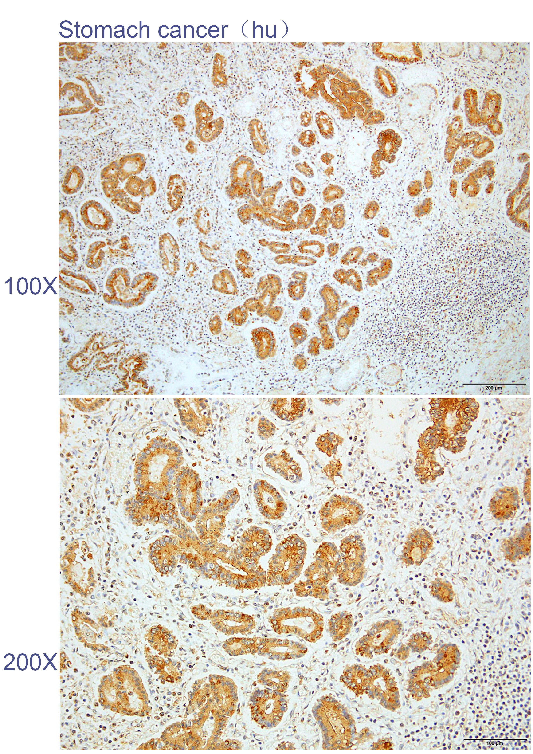 Immunohistochemistry of paraffin-embedded Human stomach cancer with HRH1 antibody diluted at 1:100