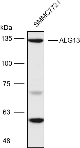 Western blot analysis with ALG13 antibody diluted at 1:2000;Lane: SMMC7721