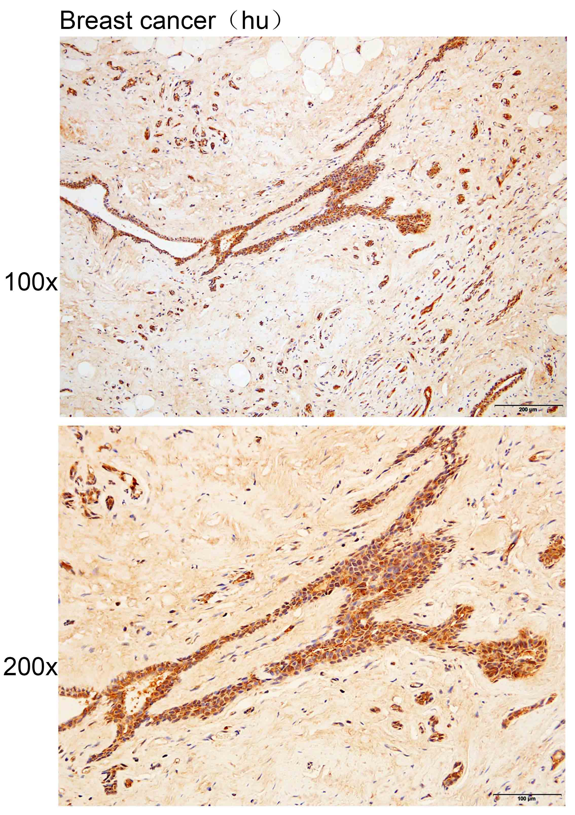 Immunohistochemistry of paraffin-embedded Human breast cancer with LRRC28 antibody diluted at 1:200