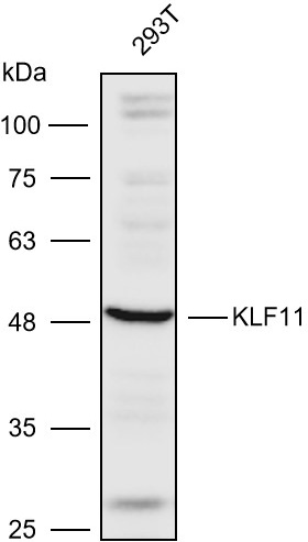 Western blot analysis with KLF11 antibody diluted at 1:2000;Lane:293T