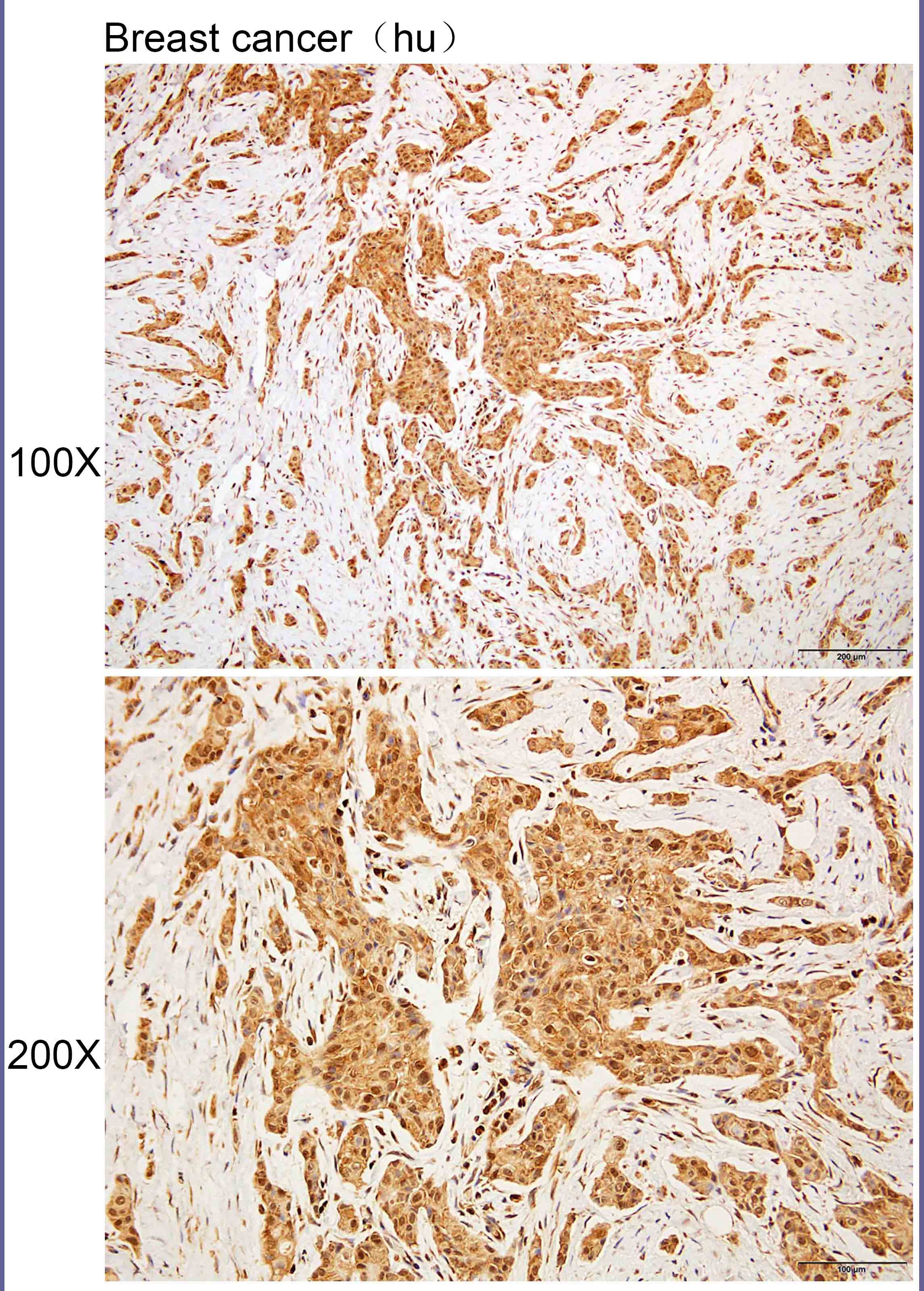 Immunohistochemistry of paraffin-embedded Human breast cancer with PELO antibody diluted at 1:100