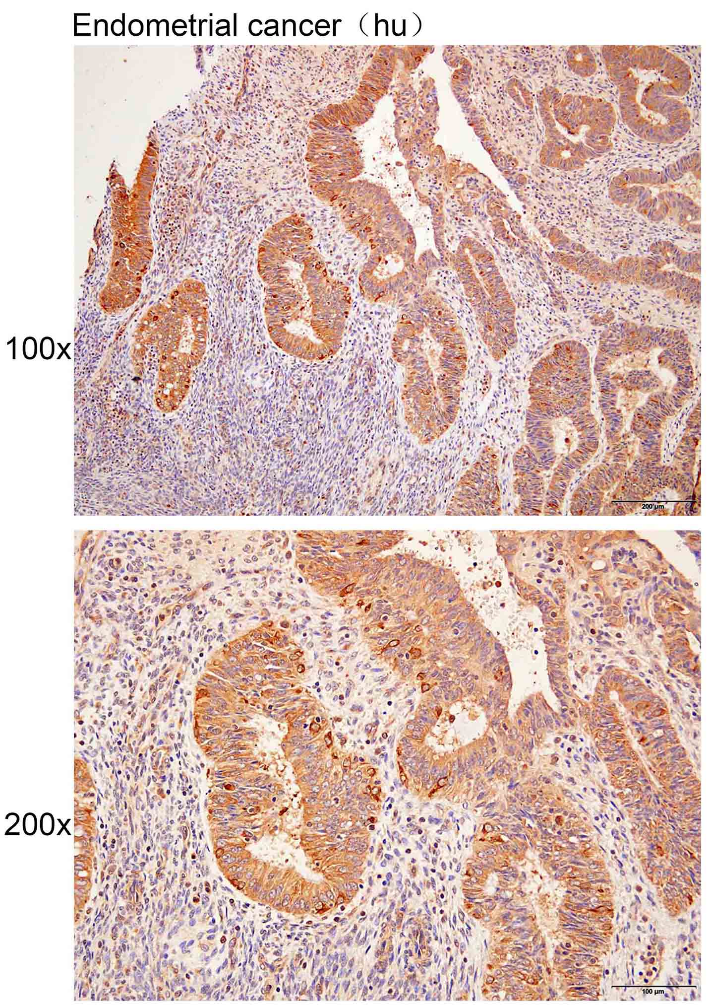 Immunohistochemistry of paraffin-embedded Human endometrial cancer with TUBB2C