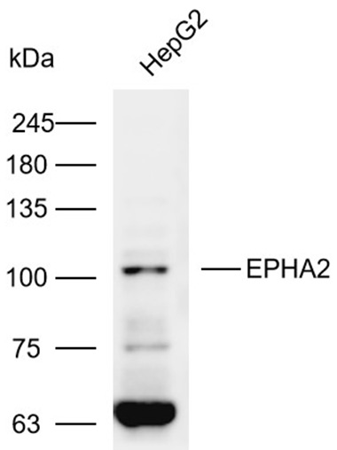 Western blot analysis with EPHA2 antibody diluted at 1:2000;Lane:HepG2