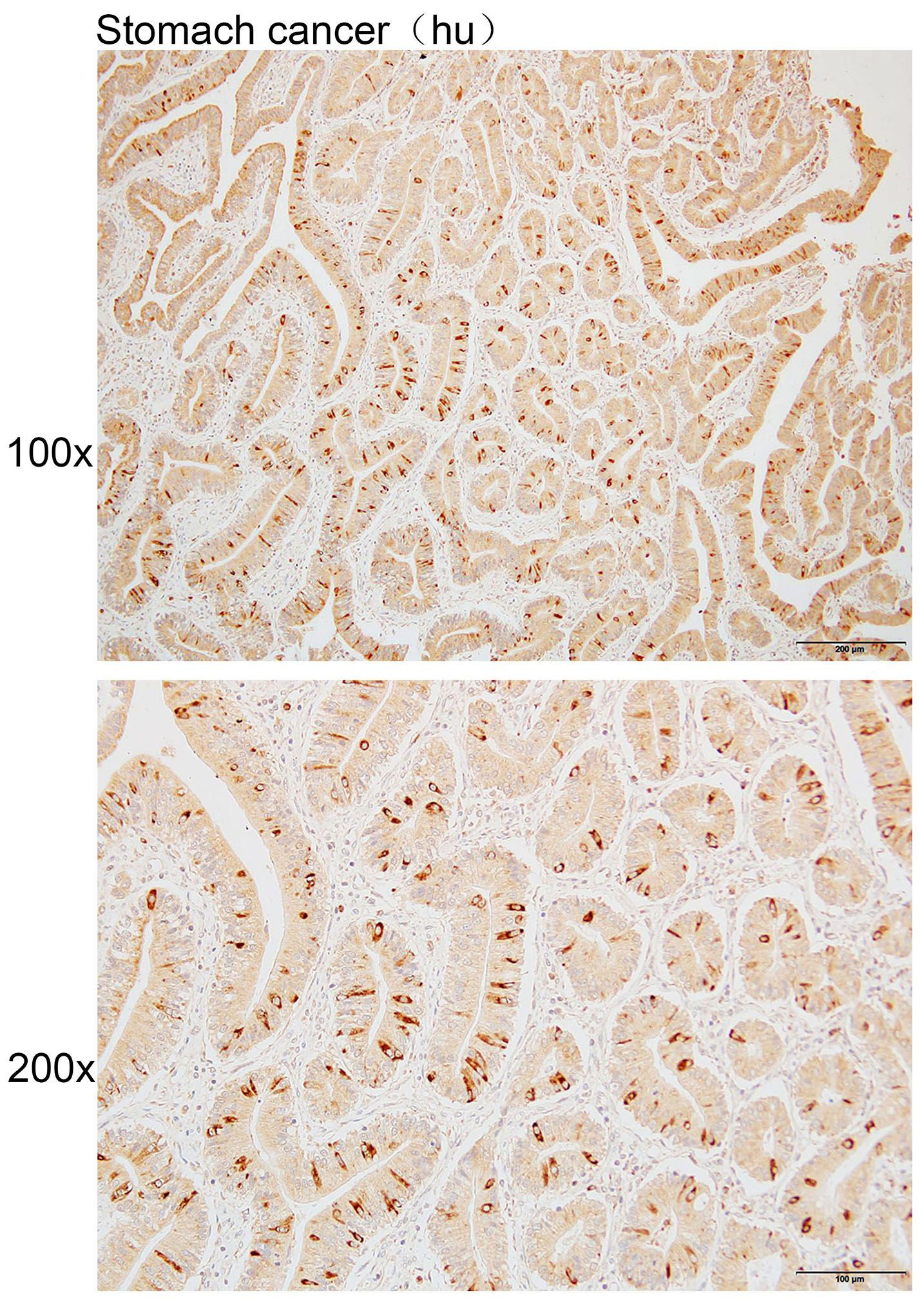 Immunohistochemistry of paraffin-embedded Human stomach cancer using GALM antibody diluted at 1:200