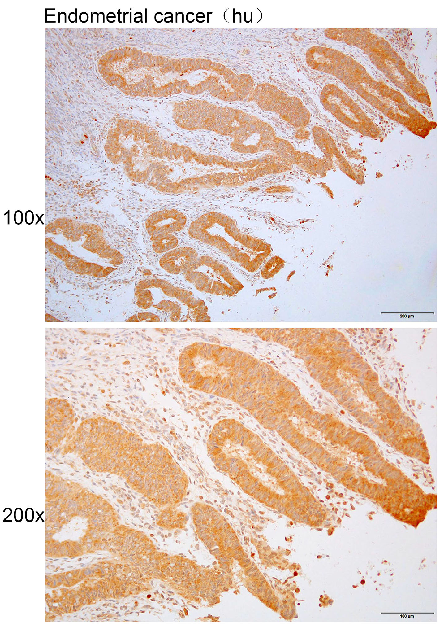 Immunohistochemistry of paraffin-embedded Human endometrial cancer with GNPTG antibody diluted at 1:100