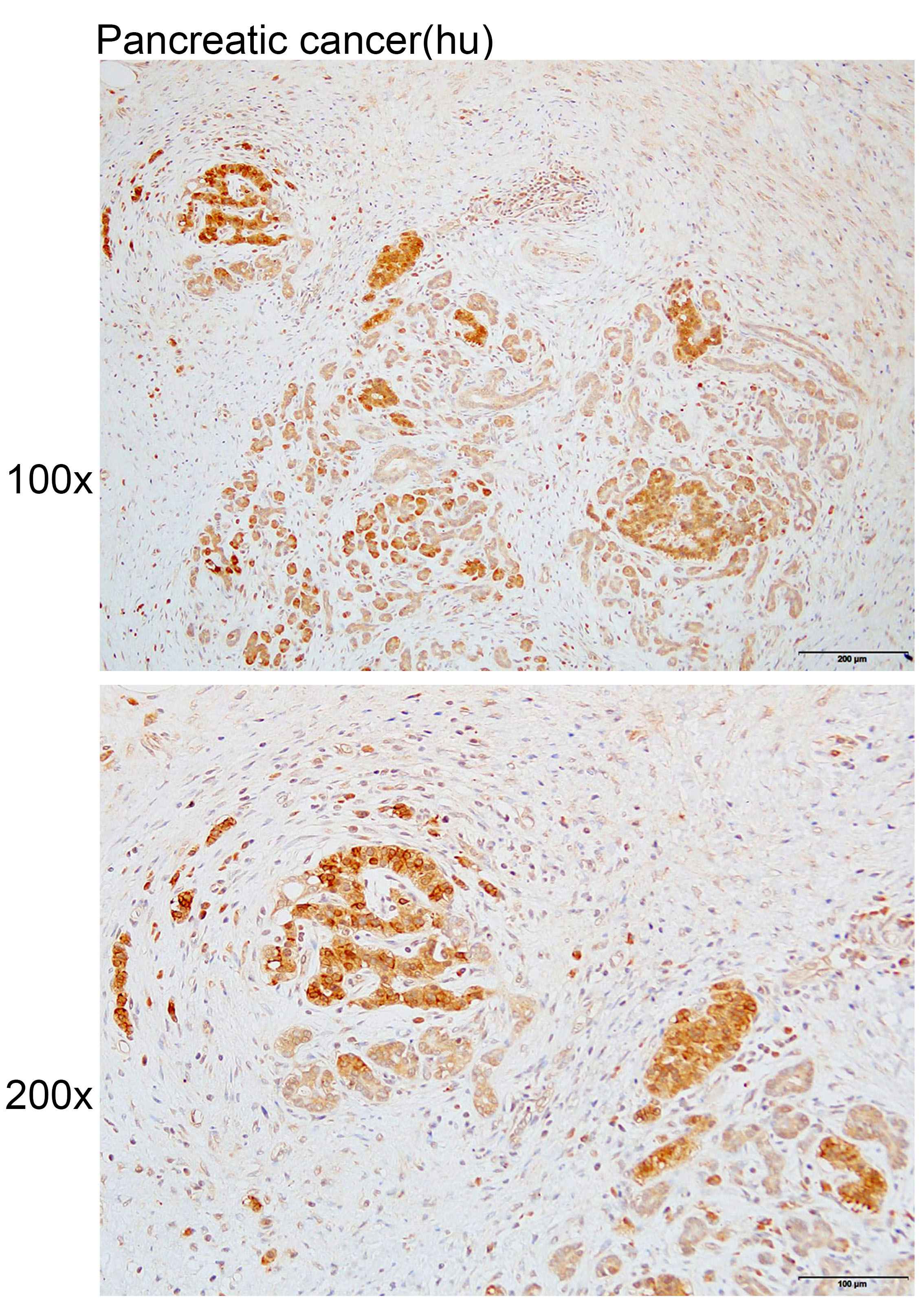 Immunohistochemistry of paraffin-embedded Human pancreatic cancer with GUSB antibody diluted at 1:100