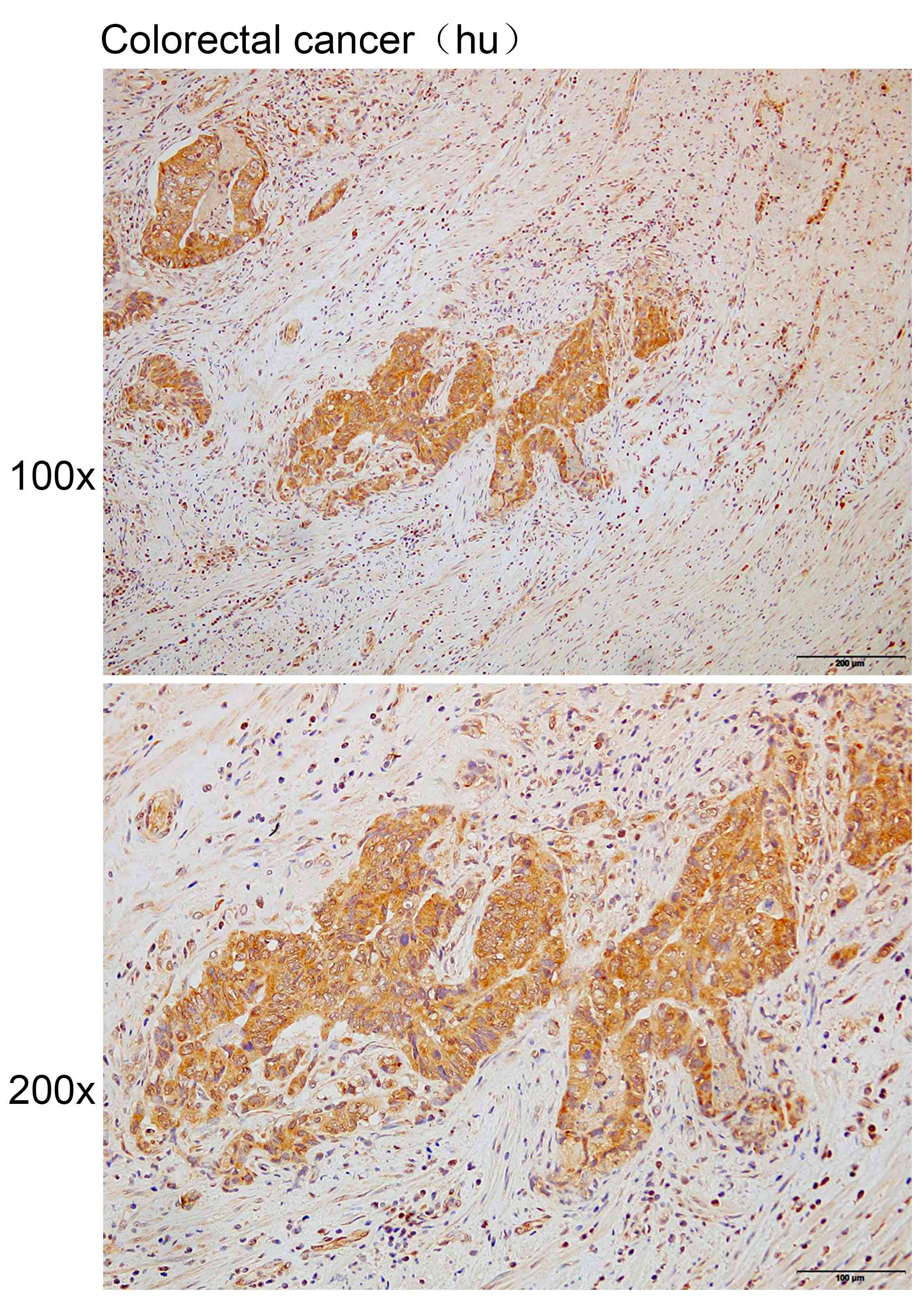 Immunohistochemistry of paraffin-embedded Human colorectal cancer using RASD1 antibody diluted at 1:100