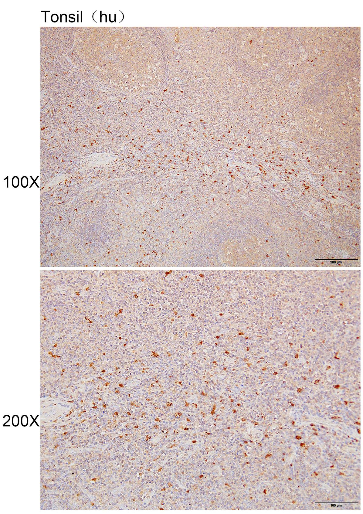 Immunohistochemistry of paraffin-embedded Human tonsil using SWAP70 antibody diluted at 1:80