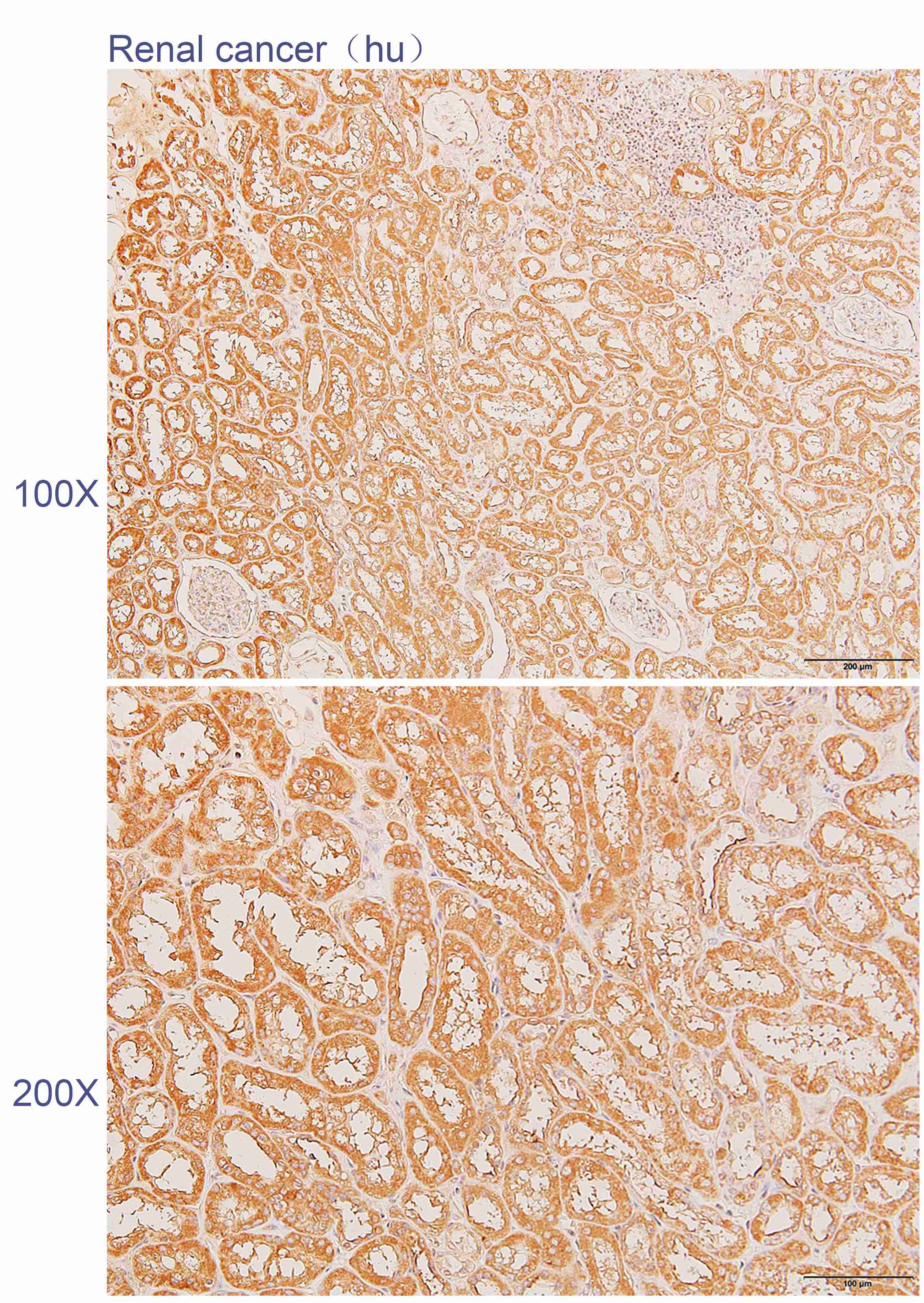 Immunohistochemistry of paraffin-embedded Human renal cancer using SMURF2 antibody diluted at 1:100