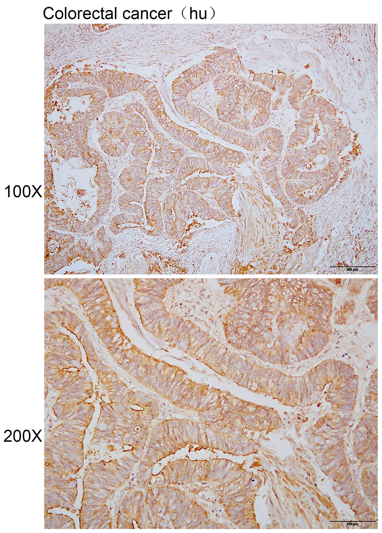 Immunohistochemistry of paraffin-embedded Human colorectal cancer using AGPat 4 antibody diluted at 1:80