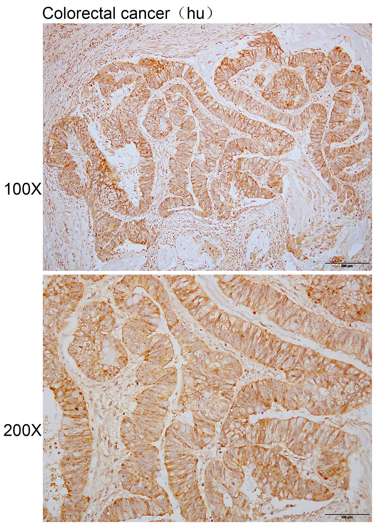 Immunohistochemistry of paraffin-embedded Human colorectal cancer using CHST6 antibody diluted at 1:80