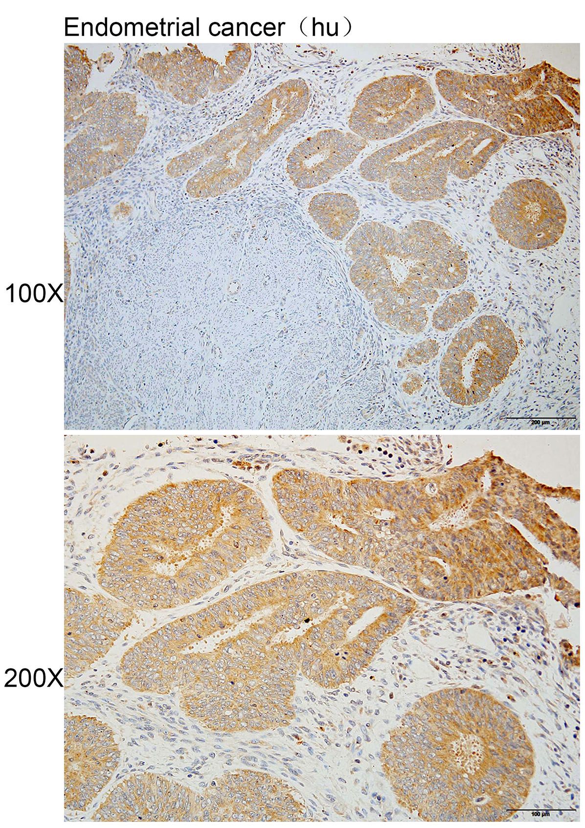 Immunohistochemistry of paraffin-embedded Human endometrial cancer using PROKR1 antibody diluted at 1:100