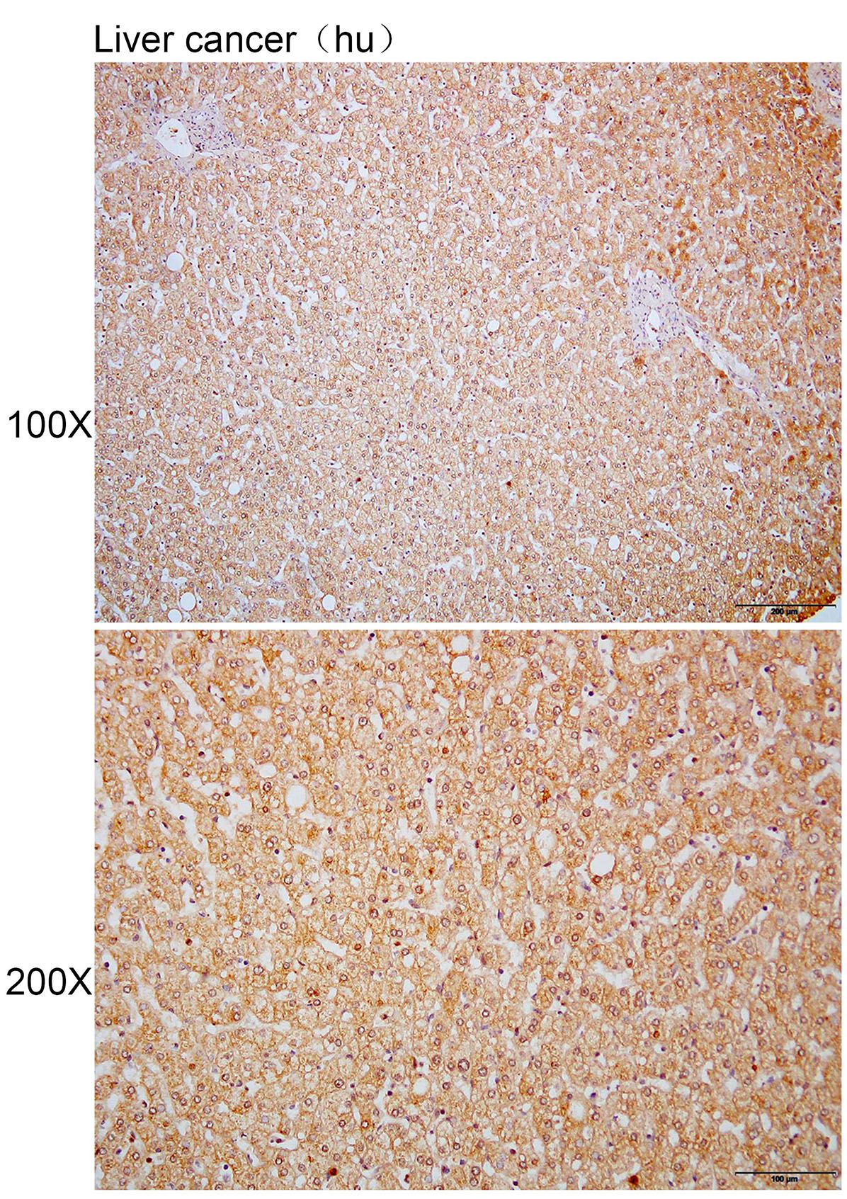 Immunohistochemistry of paraffin-embedded Human liver cancer using SLC16A3 antibody diluted at 1:80