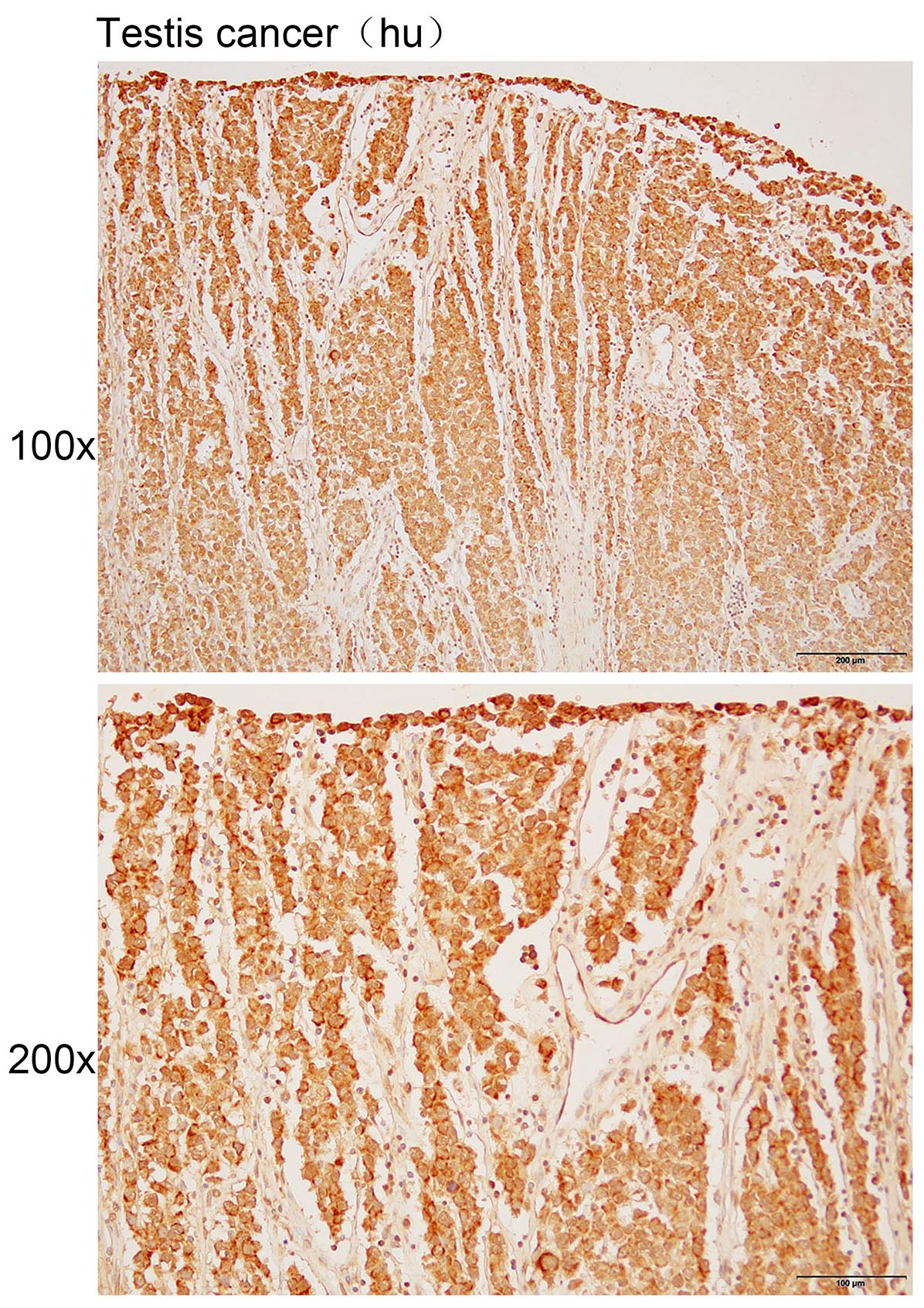 Immunohistochemistry of paraffin-embedded Human testis cancer using BCAT1 antibody diluted at 1:100
