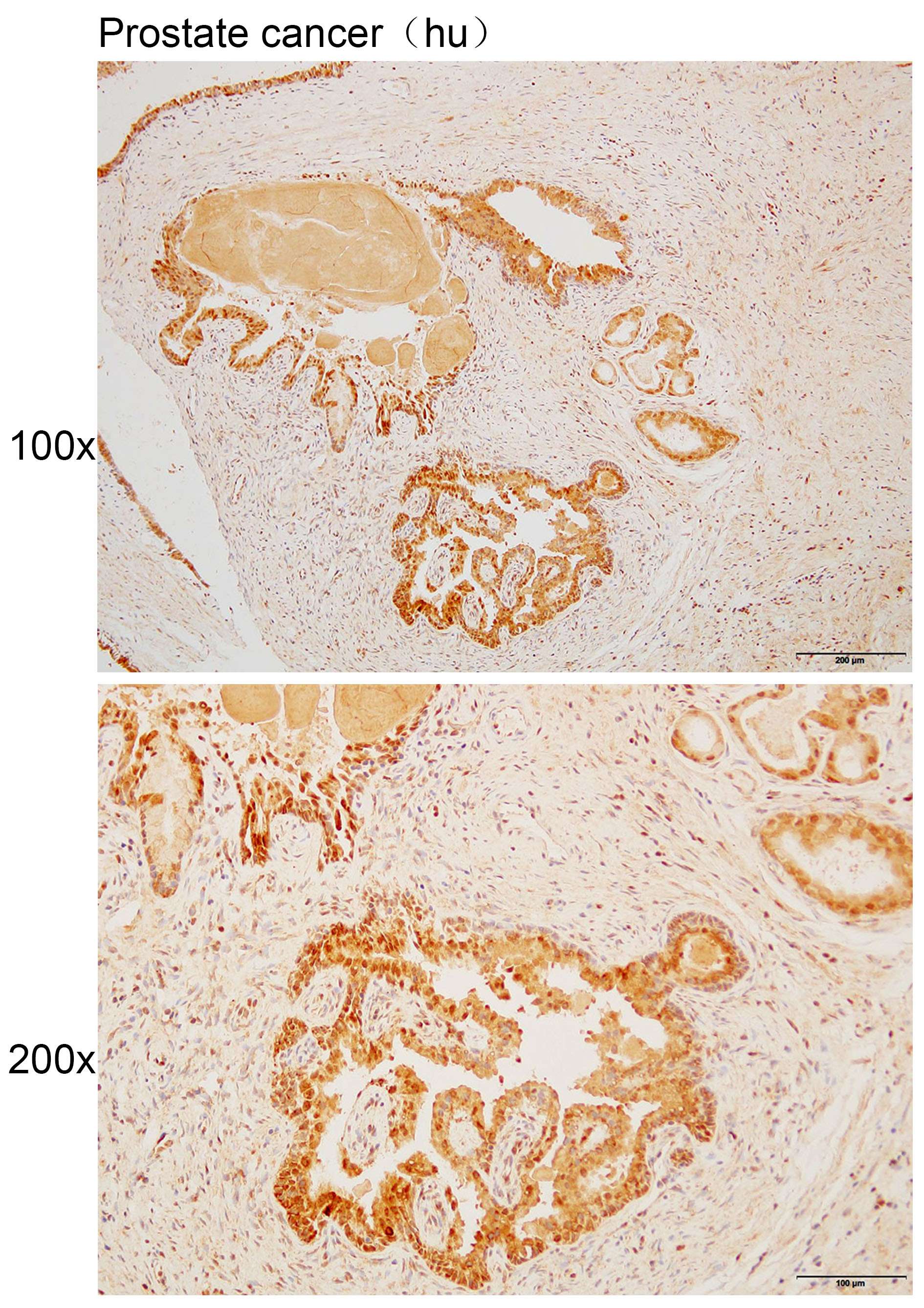 Immunohistochemistry of paraffin-embedded Human prostate cancer using ODF2 antibody diluted at 1:100