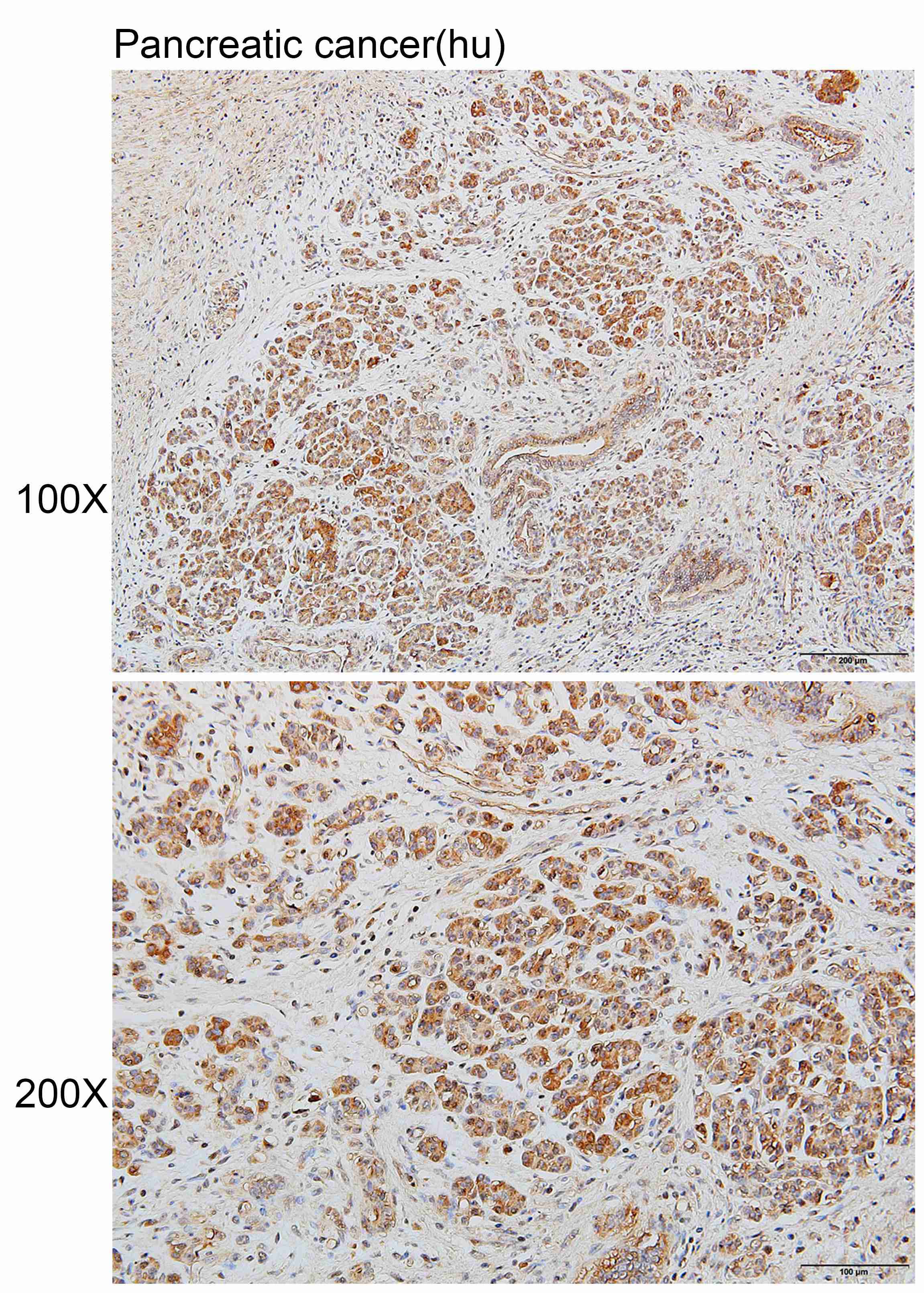 Immunohistochemistry of paraffin-embedded Human pancreatic cancer using WWP2 antibody diluted at 1:100