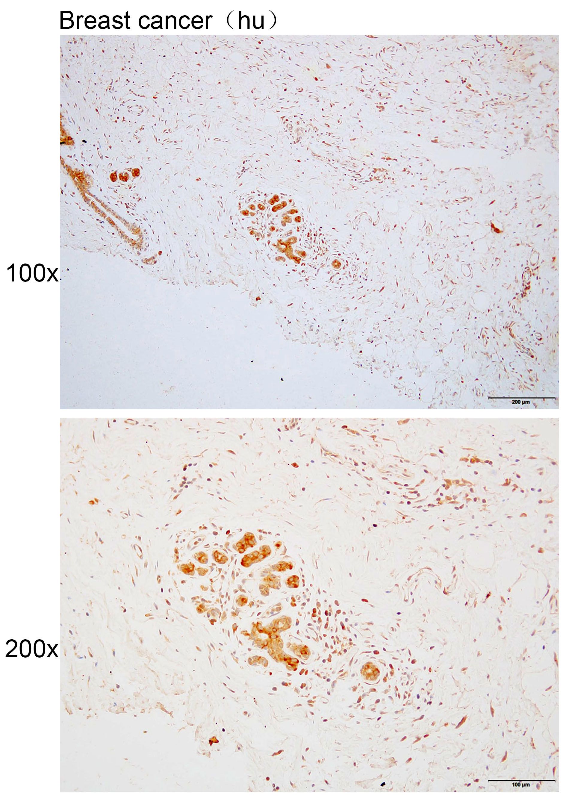 Immunohistochemistry of paraffin-embedded Human breast cancer using GET3 antibody diluted at 1:100
