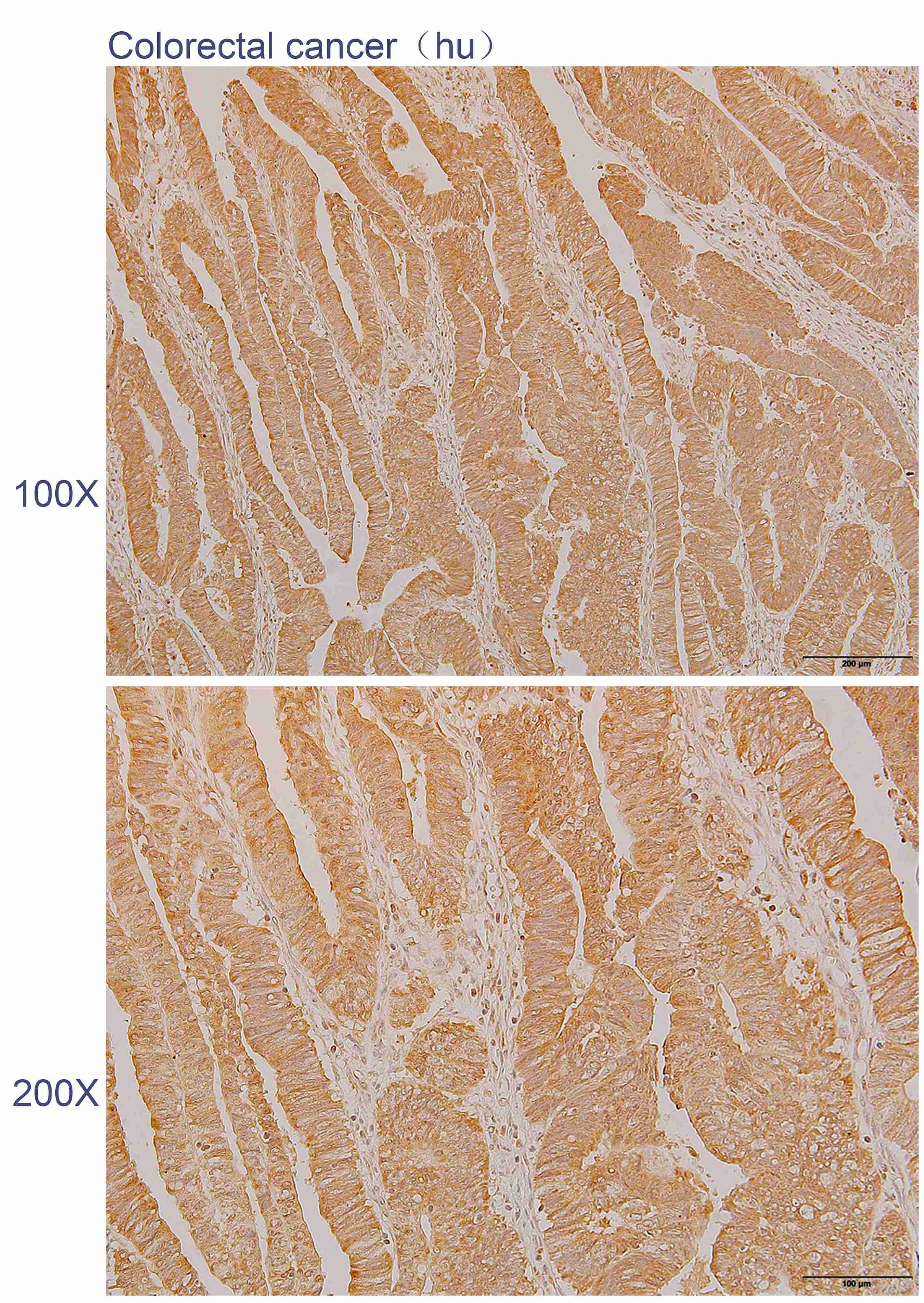 Immunohistochemistry of paraffin-embedded Human colorectal cancer using CEP57 antibody diluted at 1:200
