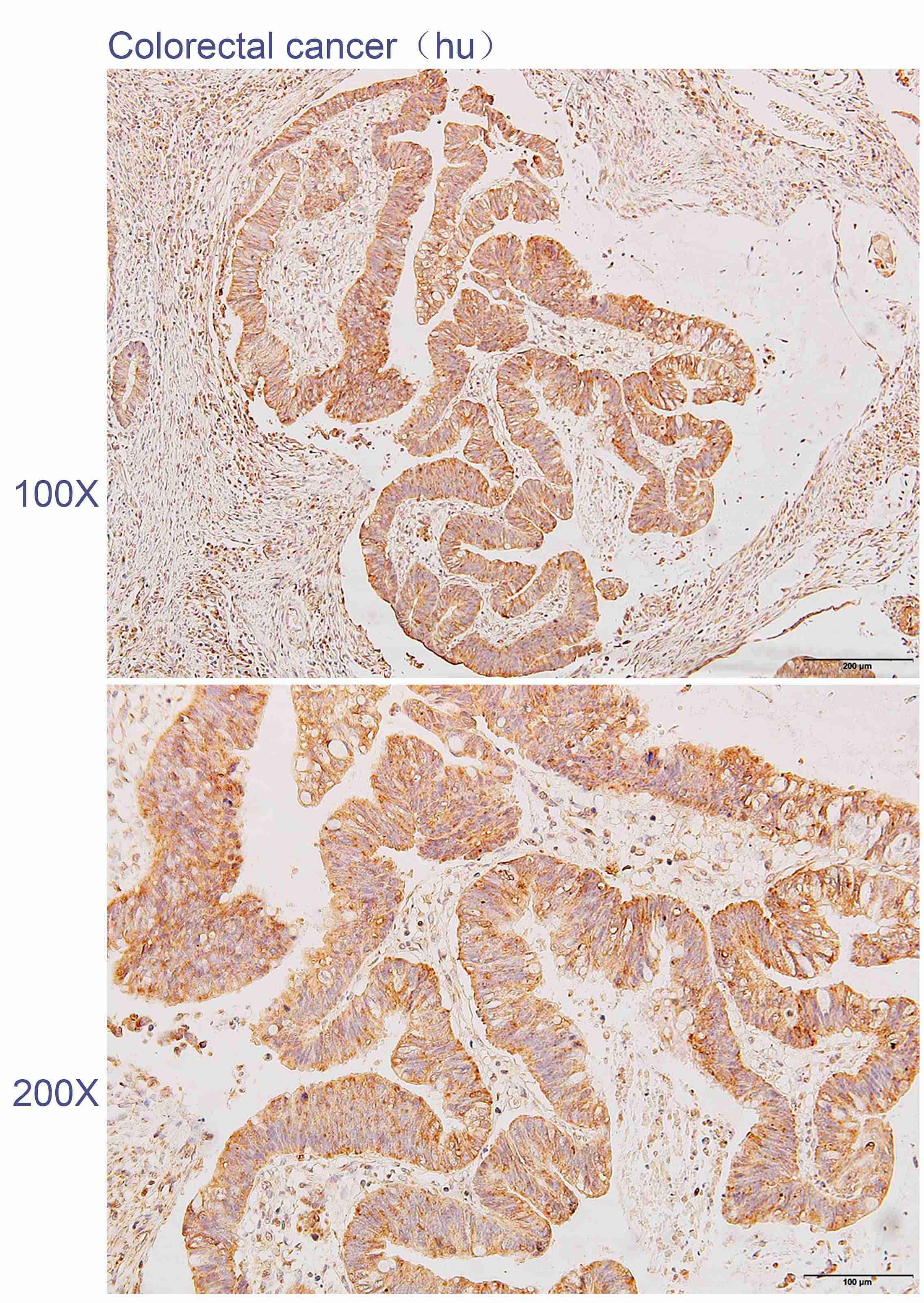 Immunohistochemistry of paraffin-embedded Human colorectal cancer using BLOC1S2 antibody diluted at 1:80