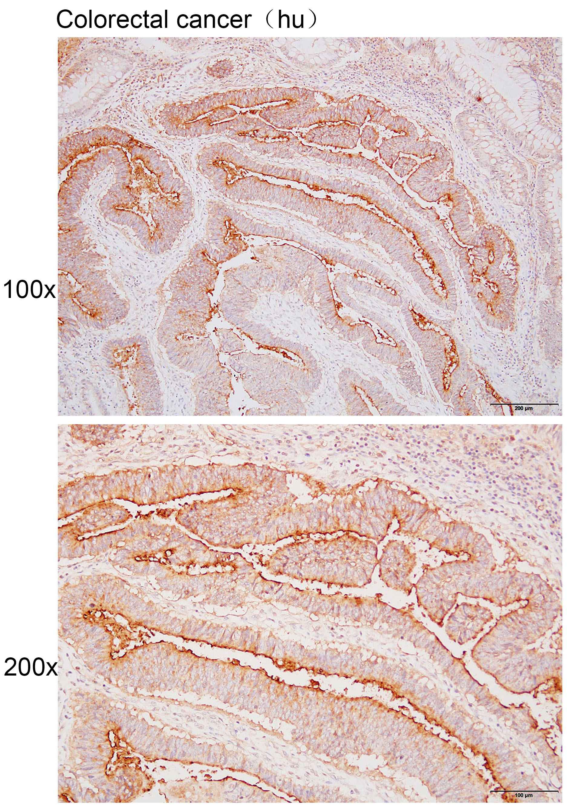 Immunohistochemistry of paraffin-embedded Human colorectal cancer using CPEB1 antibody diluted at 1:80