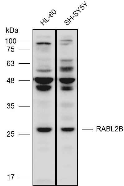 Western blot analysis with RABL2B antibody diluted at 1:2000;Lane:HL-60,SH-SY5Y