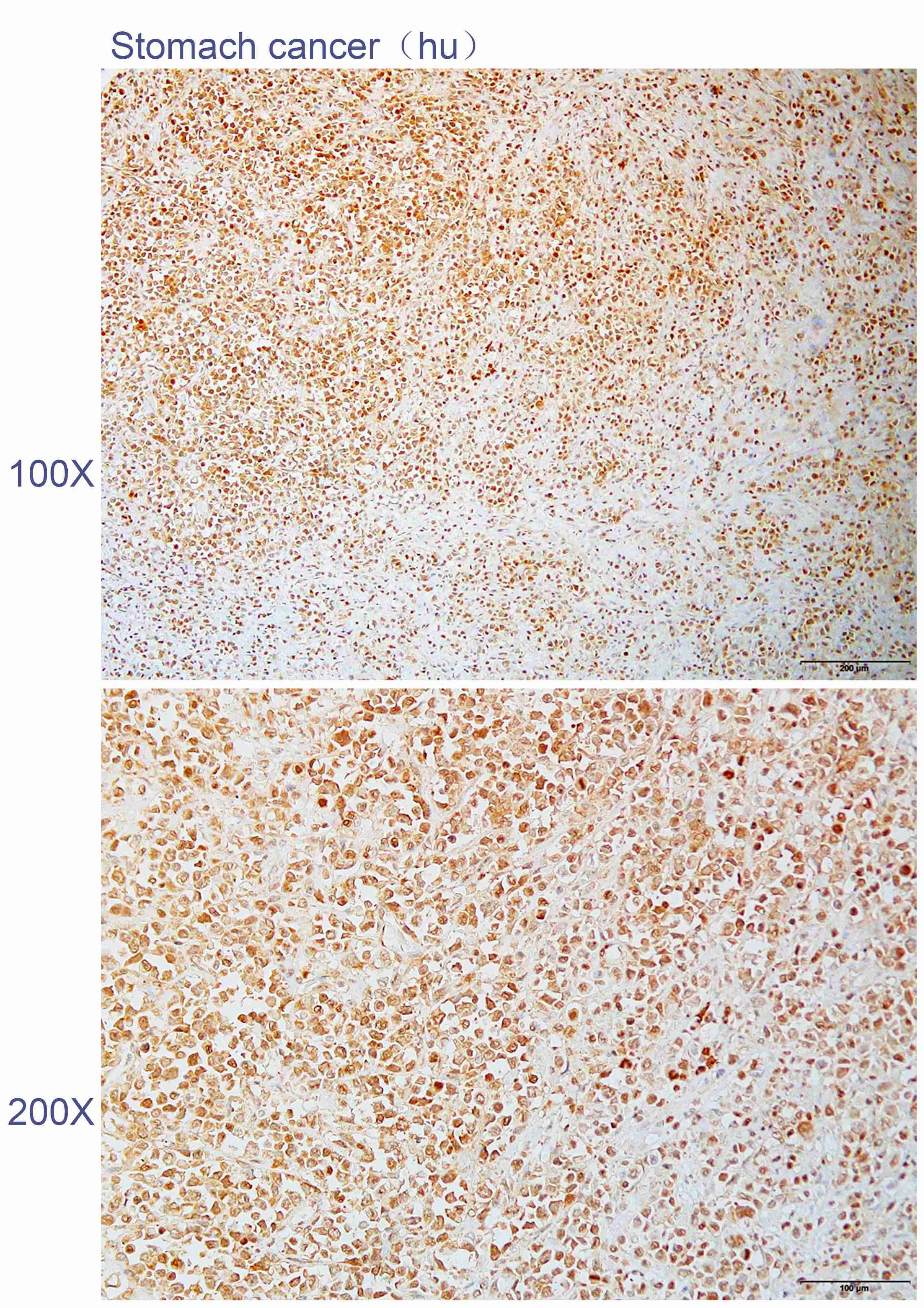 Immunohistochemistry of paraffin-embedded Human stomach cancer using KANSL2 antibody diluted at 1:100.