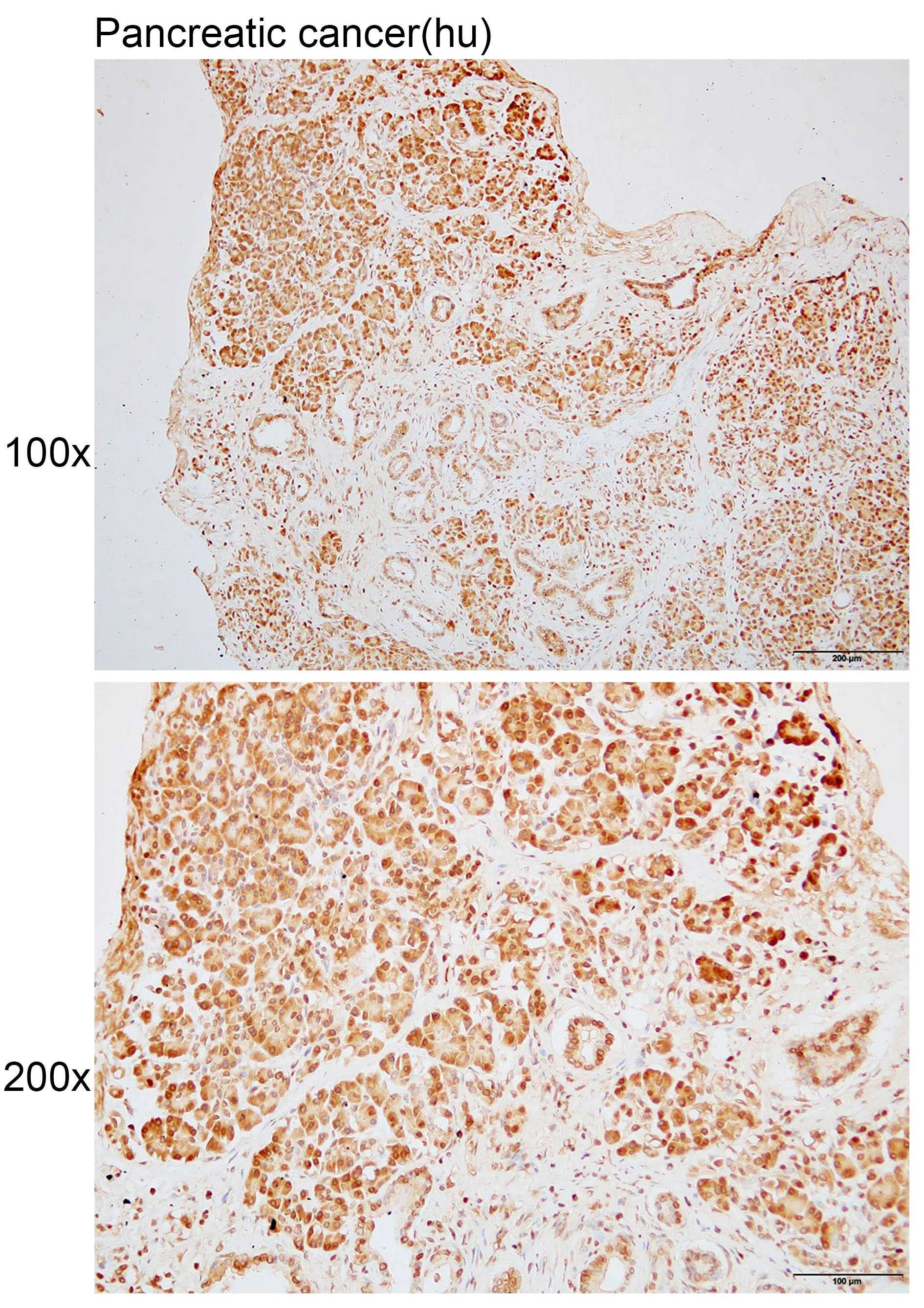 Immunohistochemistry of paraffin-embedded Human pancreatic cance using THNSL1 antibody diluted at 1:80.