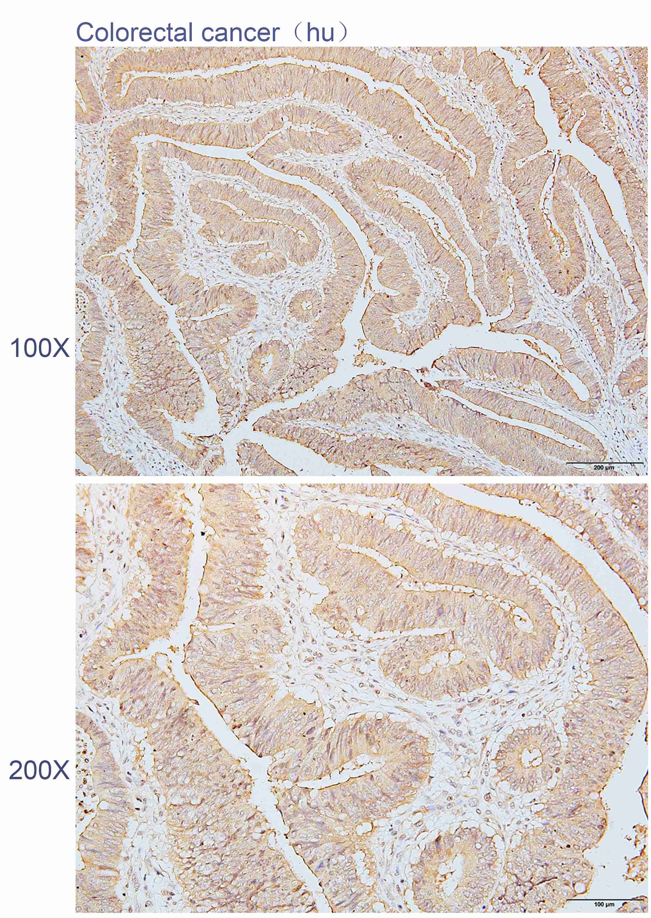 Immunohistochemistry of paraffin-embedded Human colorectal cancer using USP12 antibody diluted at 1:200.