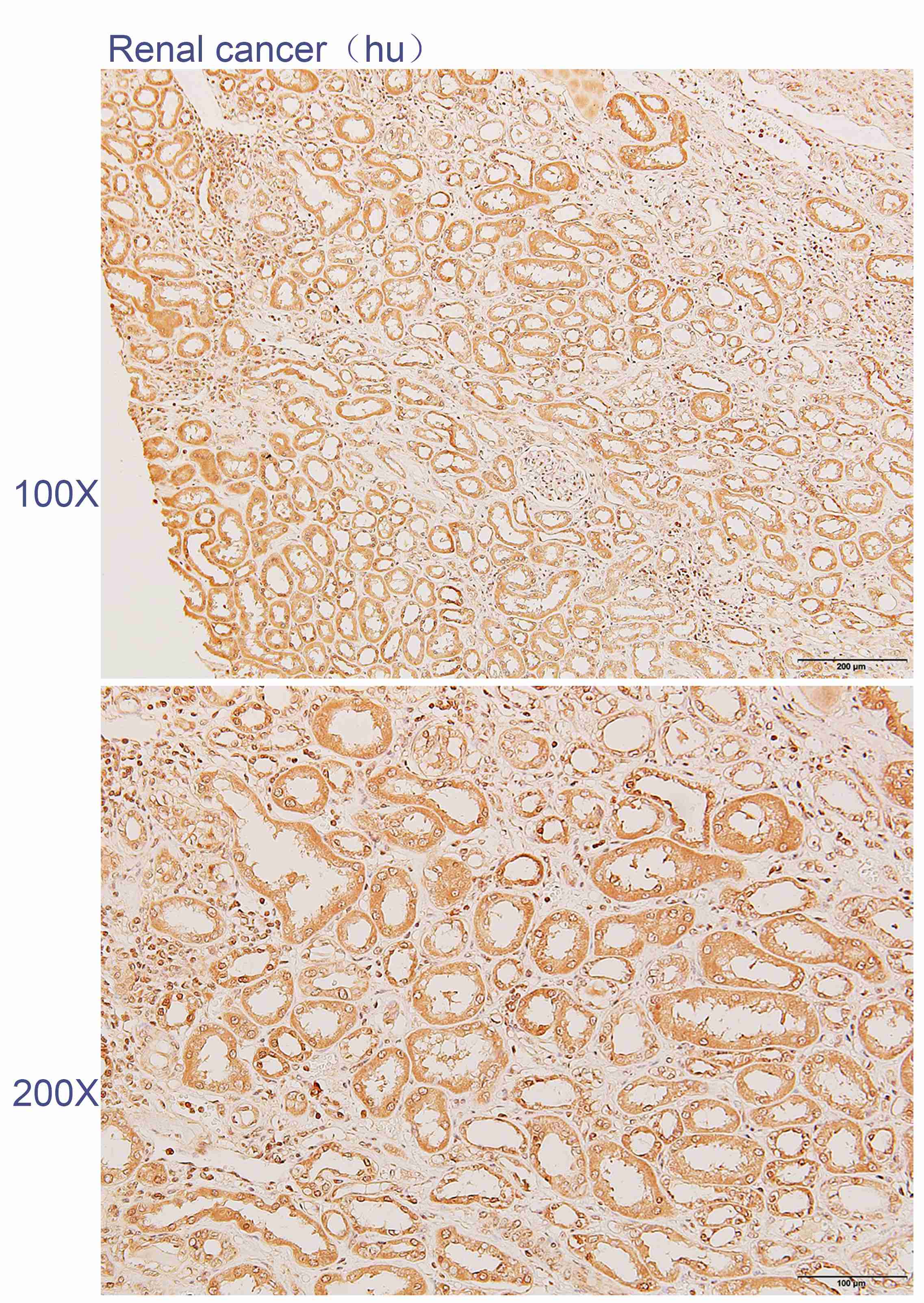 Immunohistochemistry of paraffin-embedded Human renal cancer using USP12 antibody diluted at 1:200.