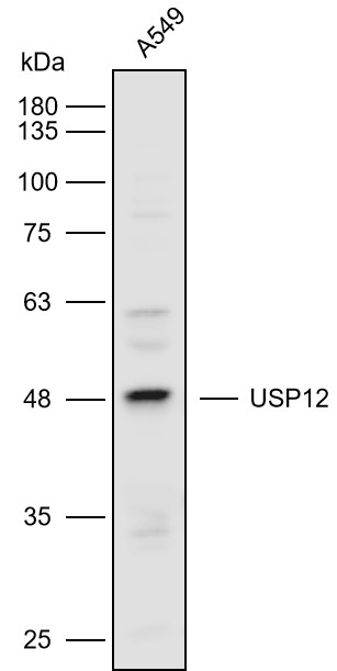 Western blot analysis with USP12 antibody diluted at 1:3000;Lane:A549