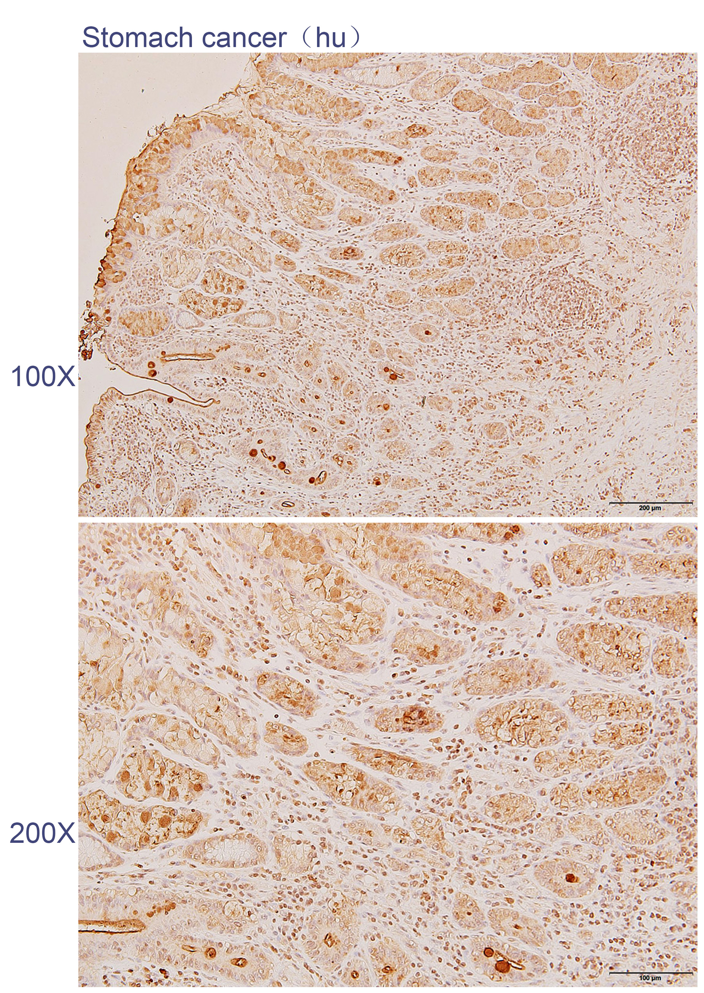 Immunohistochemistry of paraffin-embedded Human stomach cancer with CNKSR3 antibody diluted at 1:100