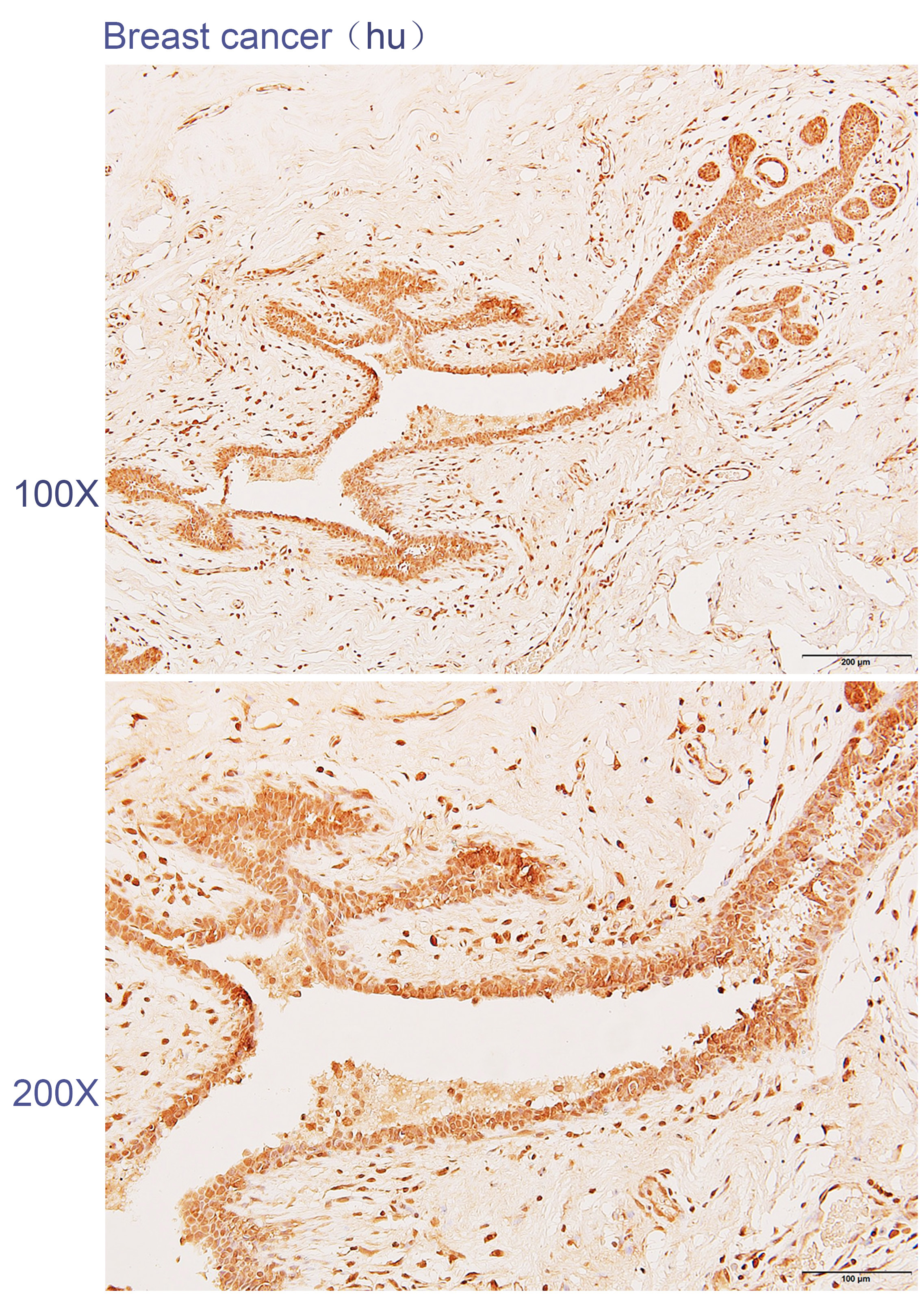 Immunohistochemistry of paraffin-embedded Human breast cancer with MAGT1 antibody diluted at 1:200