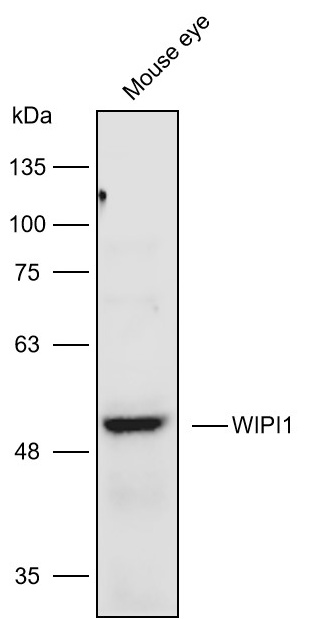 Western blot analysis with WIPI1 antibody diluted at 1:2000;Lane:Mouse eye