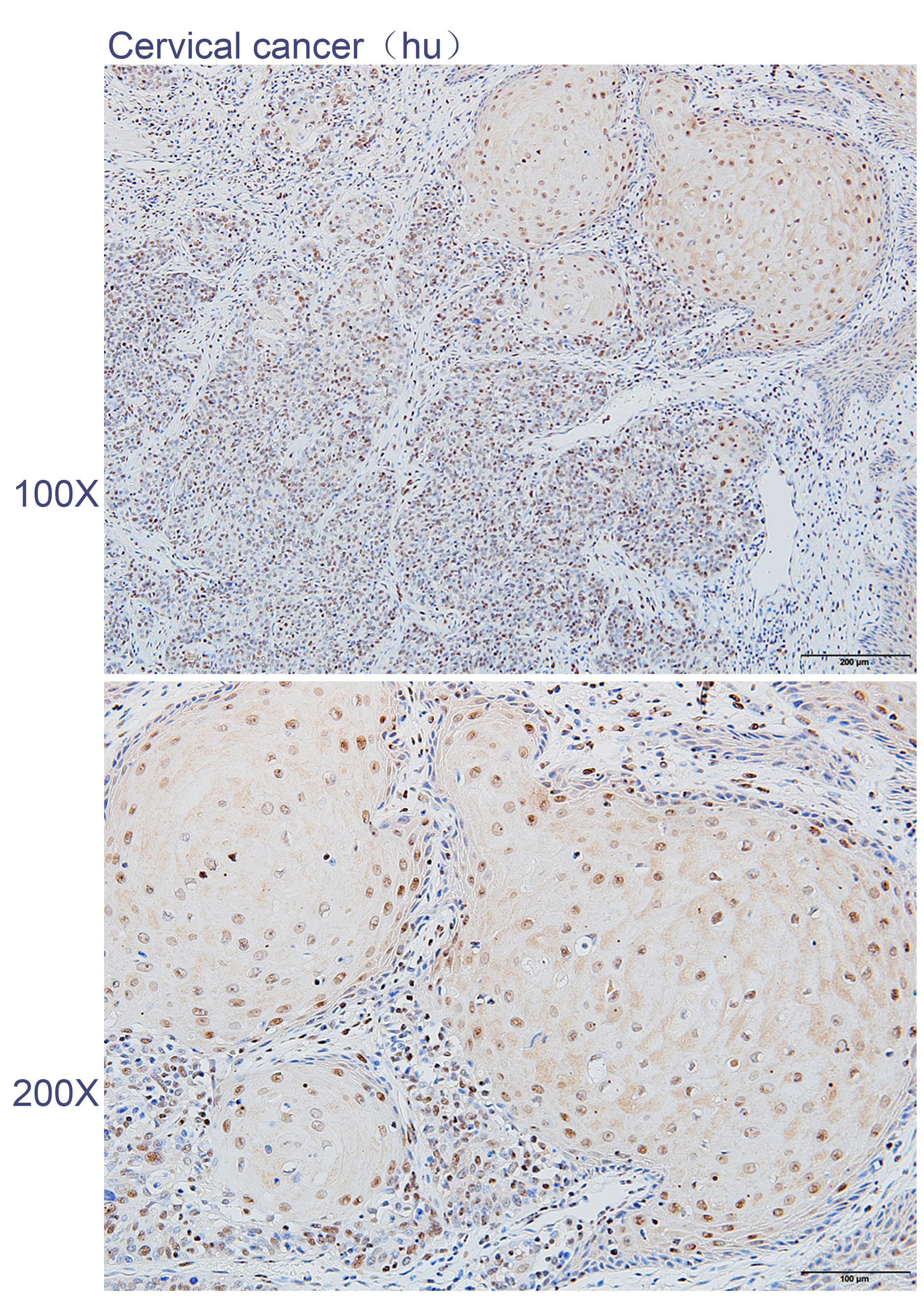 Immunohistochemistry of paraffin-embedded Human cervical cancer with CCAR2 antibody diluted at 1:200