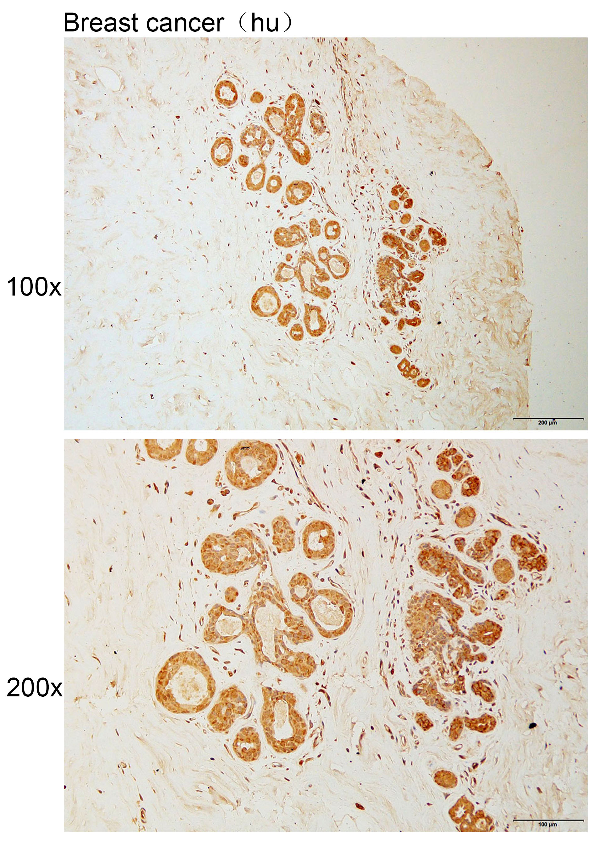 Immunohistochemistry of paraffin-embedded Human breast cancer with F2RL3(Cleaved-Gly48) antibody diluted