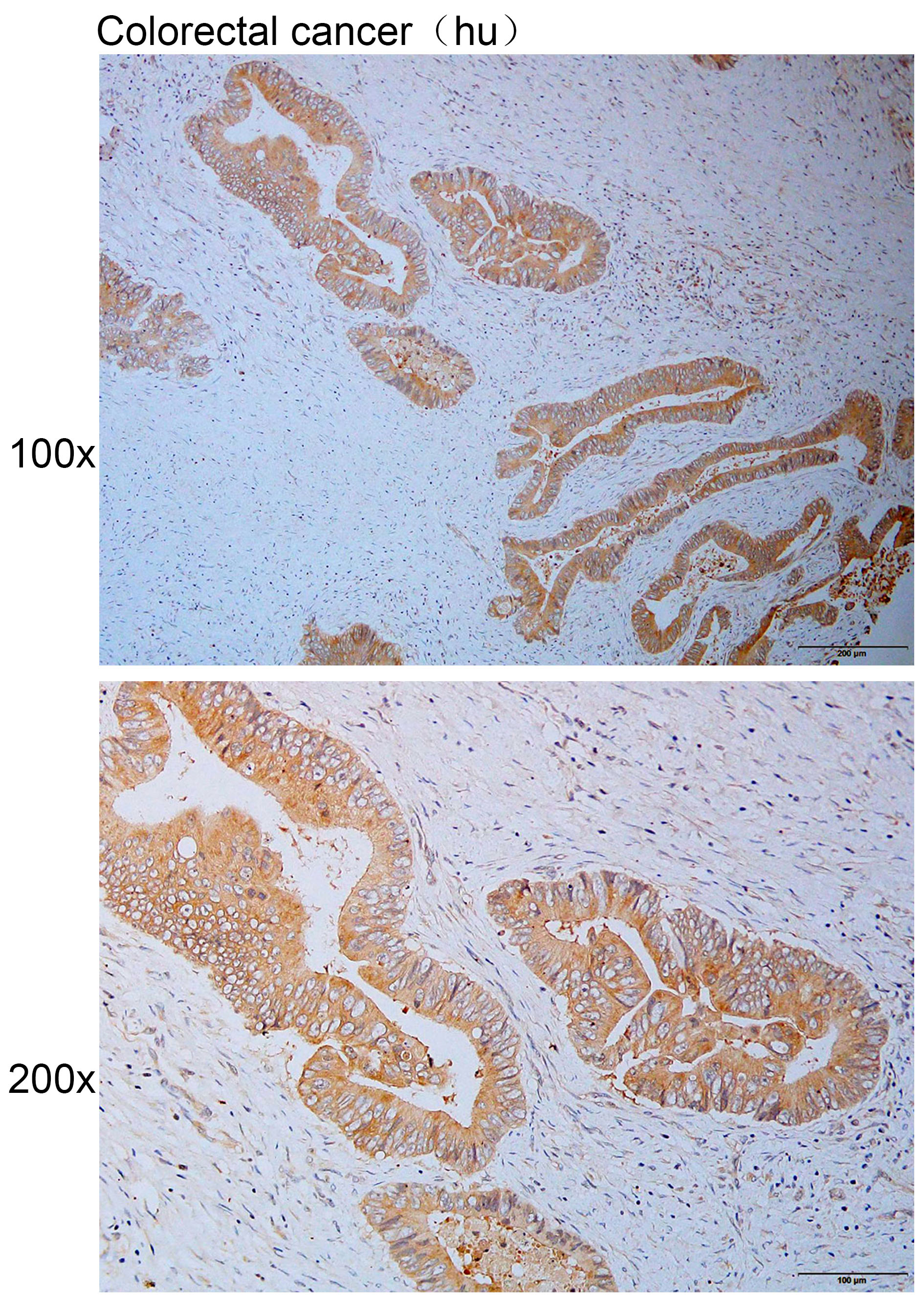 Immunohistochemistry of paraffin-embedded Human colorectal cancer with ADD3 antibody diluted at 1:200