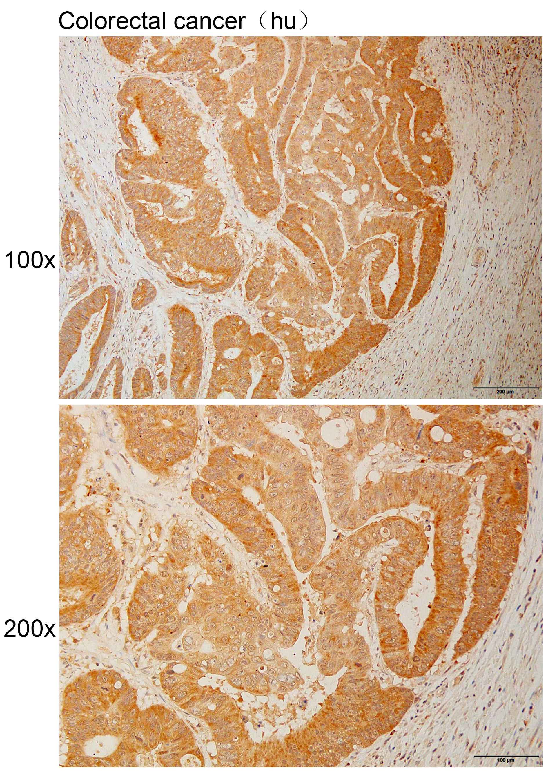 Immunohistochemistry of paraffin-embedded Human colorectal cancer with VILL antibody diluted at 1:100